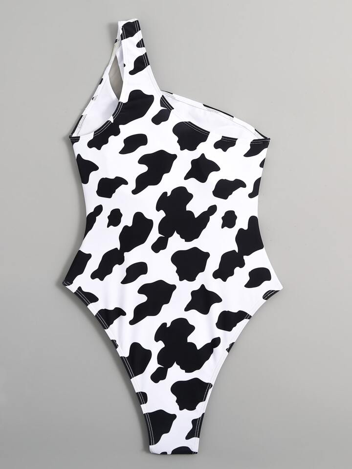 Bañador una pieza con patrón de vaca de un hombro de malla