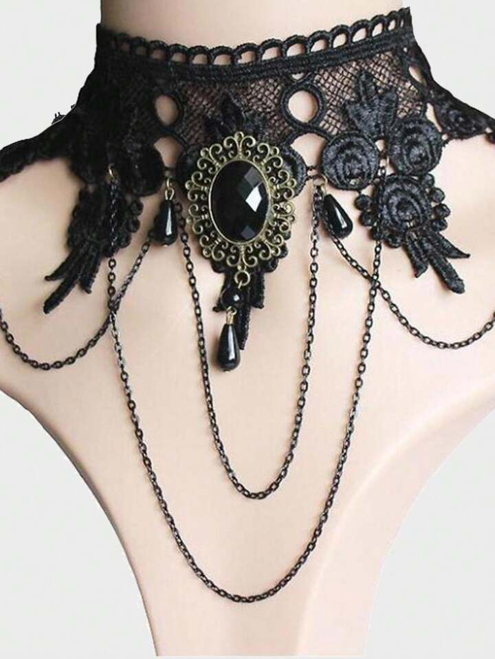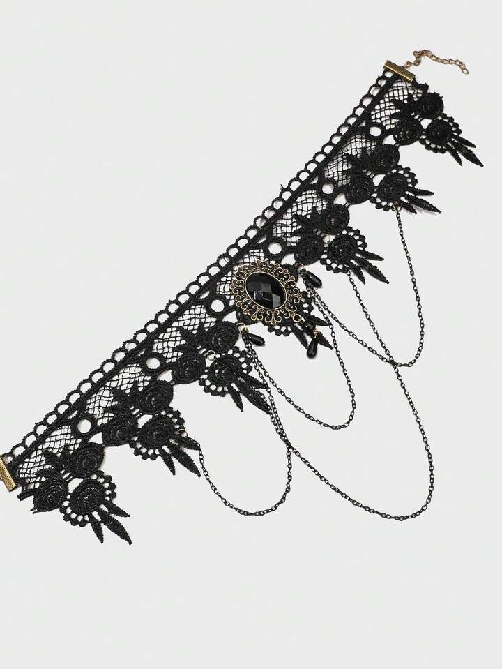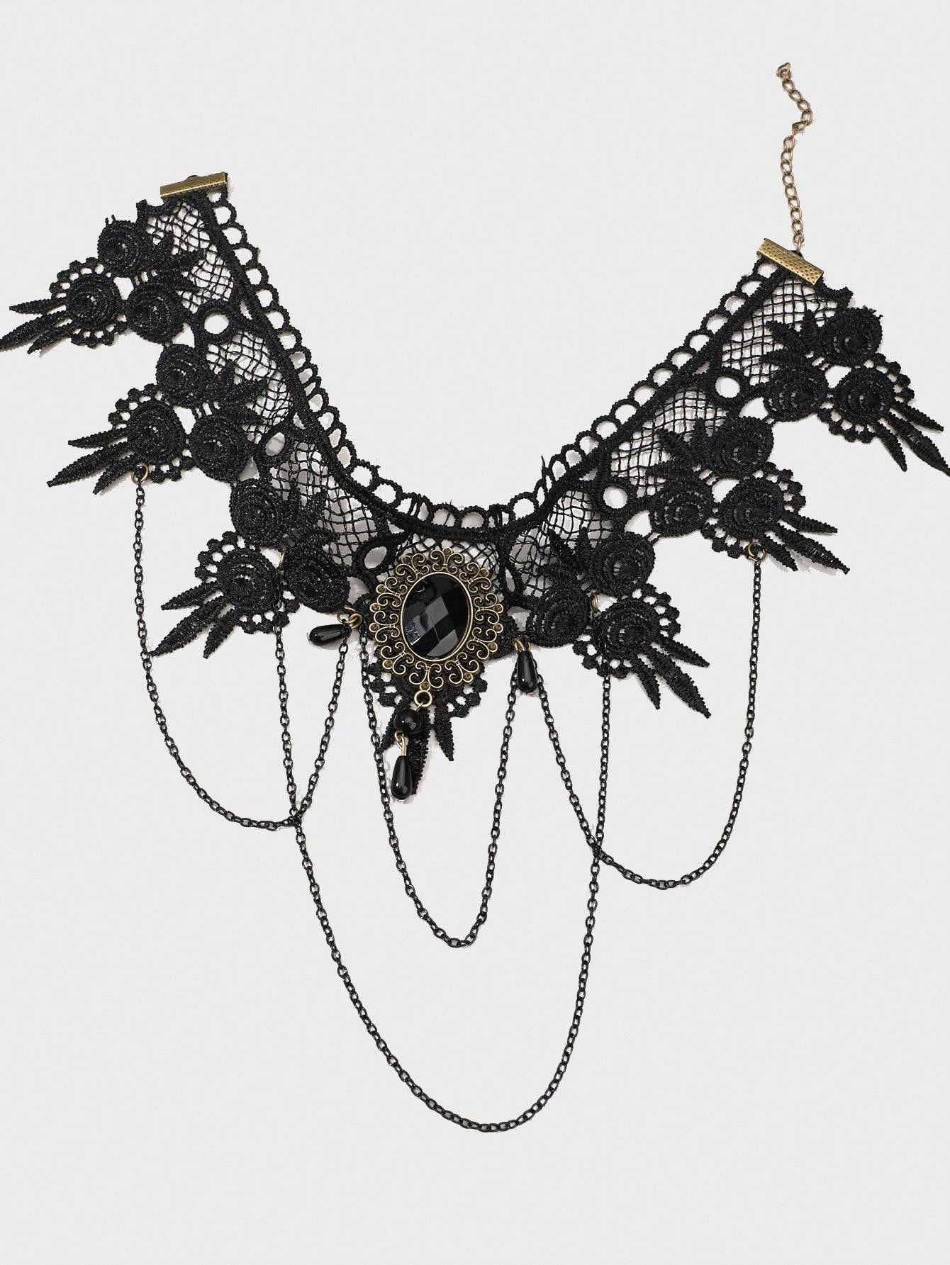 Goth Collar de encaje con cruz punk creativo, accesorios Lolita góticos de nicho retro, collares de mujer, Halloween