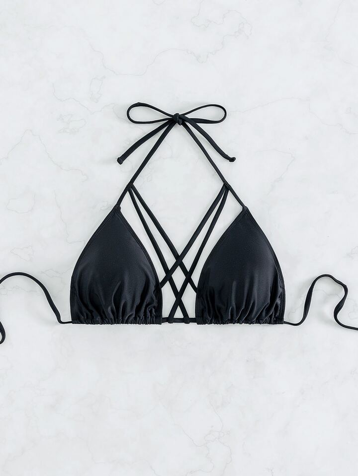 Top bikini triángulo con tira cruzada halter