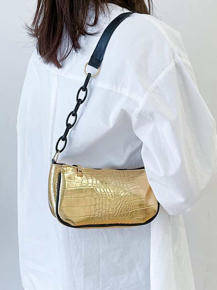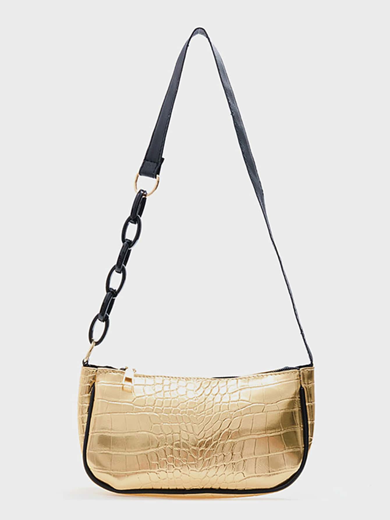 Bolso Baguette De Cadena Con Acabado De Cocodrilo