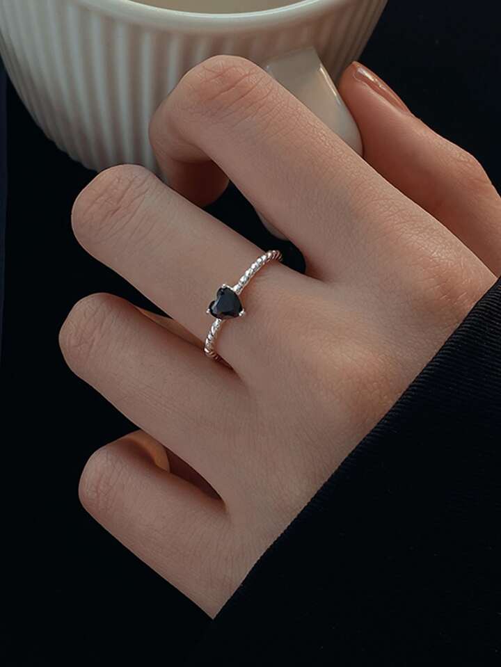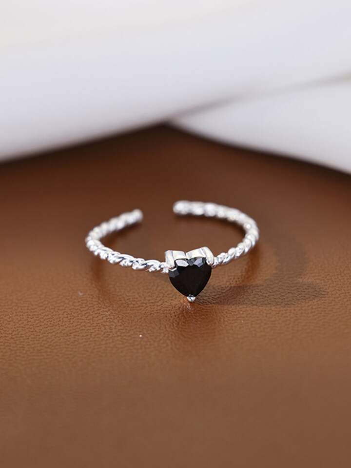 Anillo abierto zirconia cúbica con adorno de corazón
