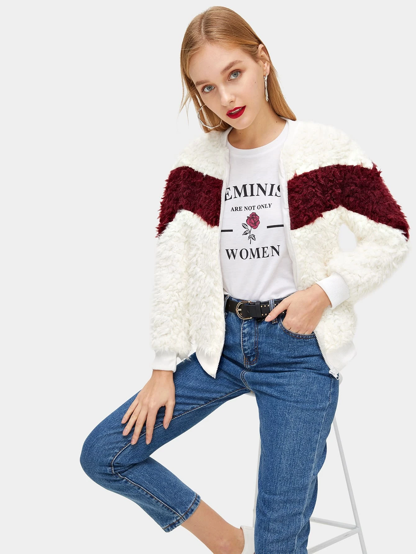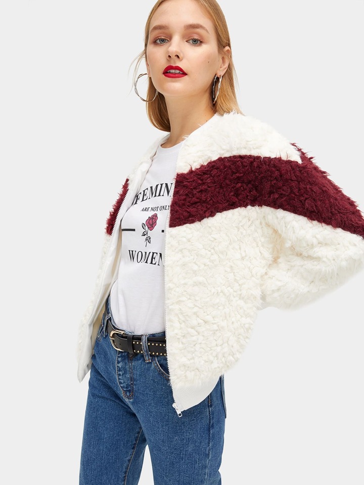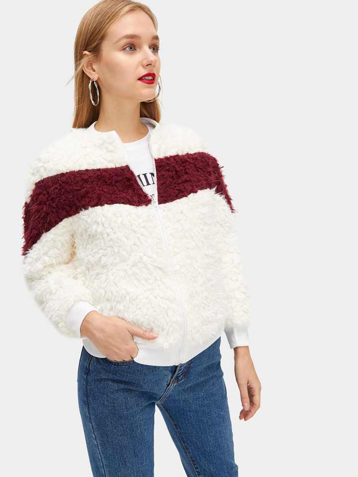 Cazadora Teddy con cremallera con costura