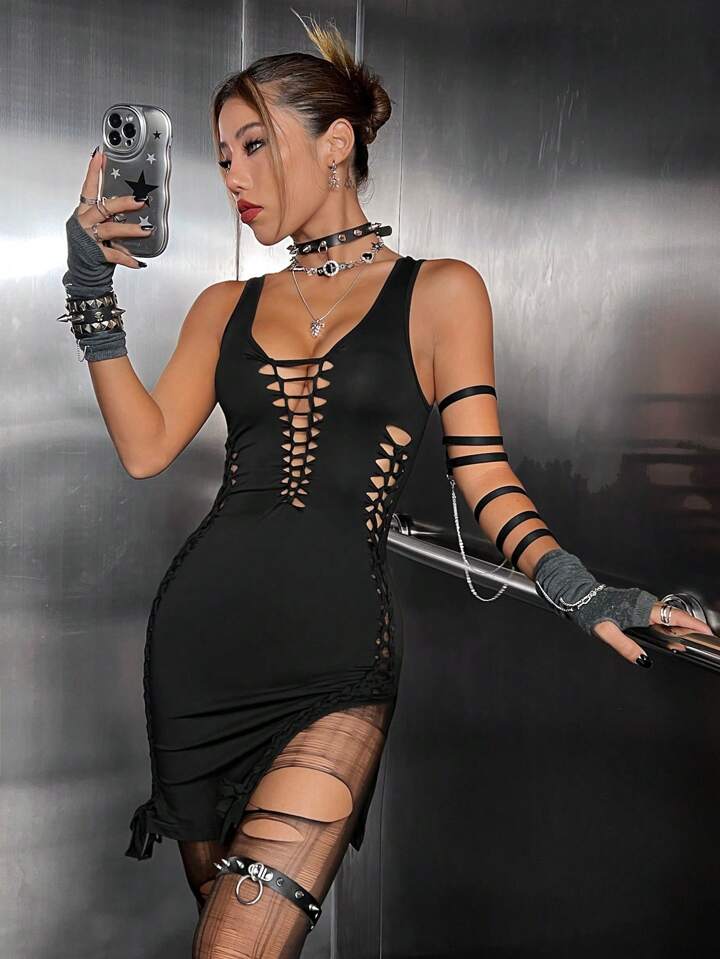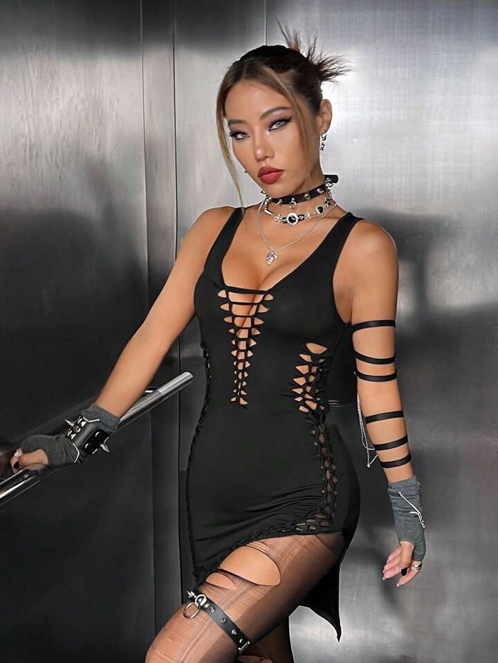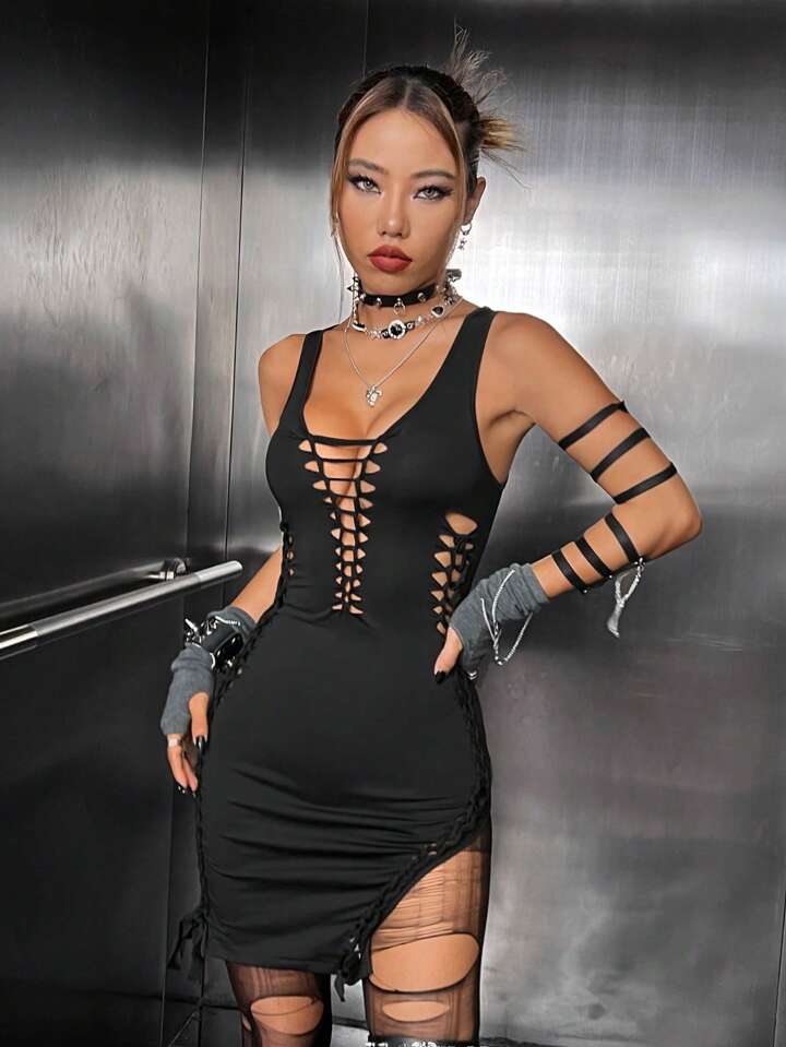 Vestido ajustado con abertura con tira cruzada delantera sin Guante