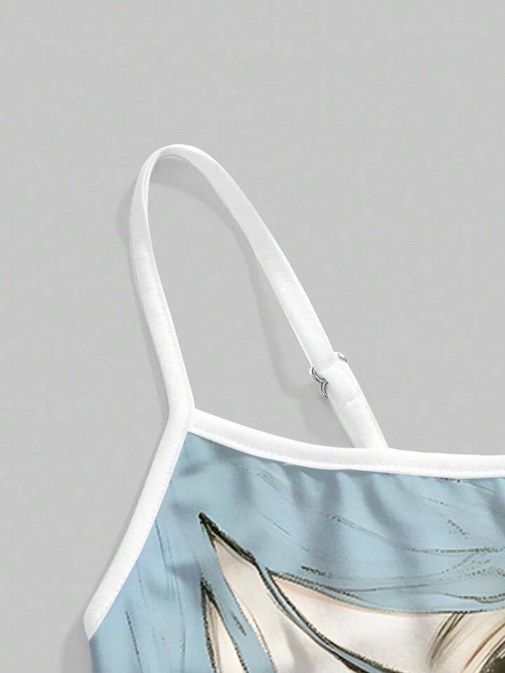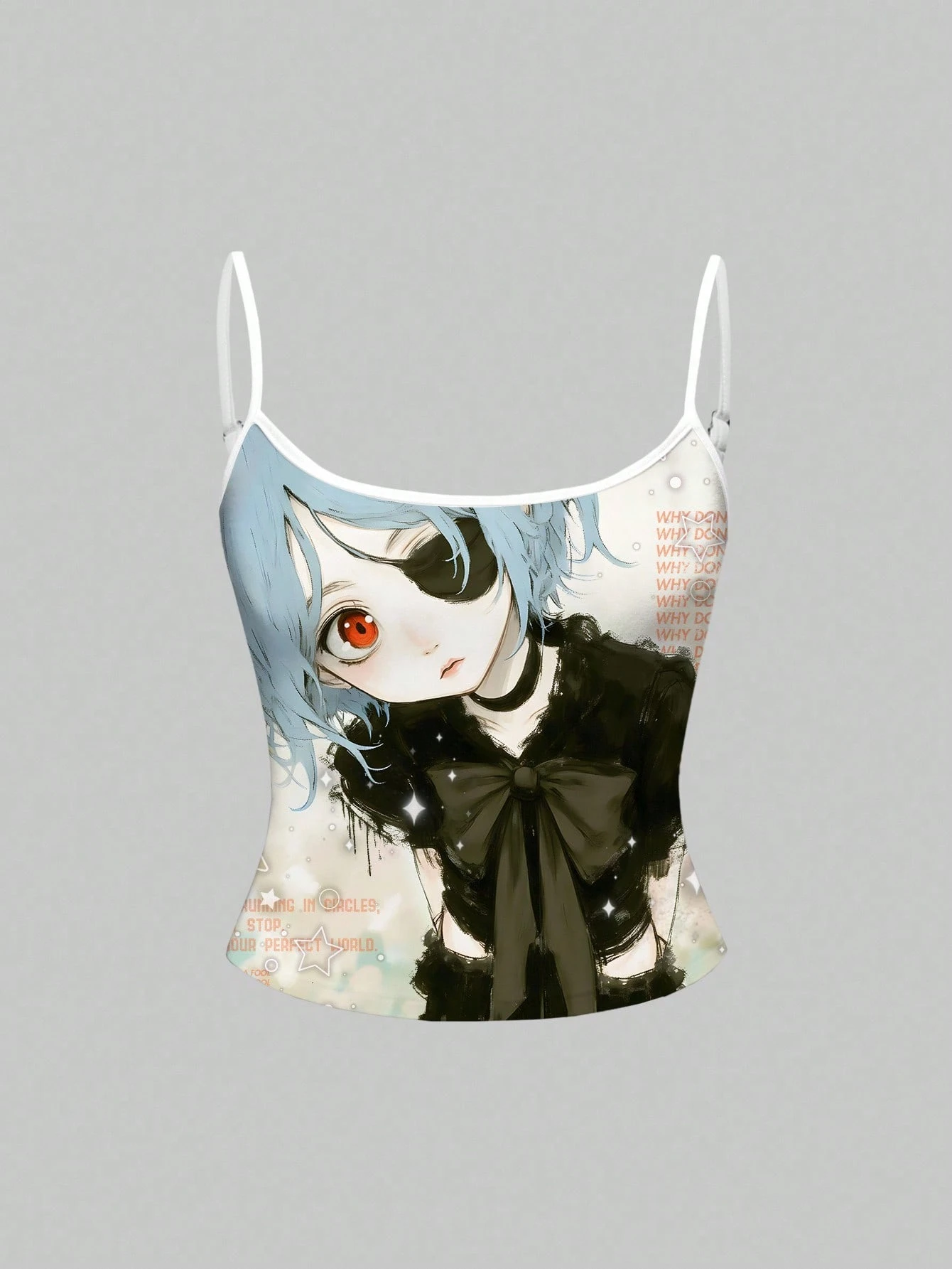 Camiseta de tirantes de mujer con estampado de ojos de pez y cabeza grande de personaje de anime lindo
