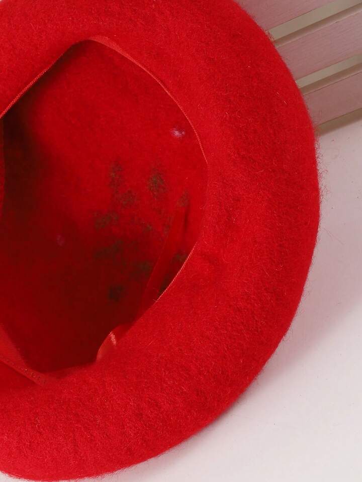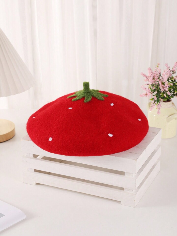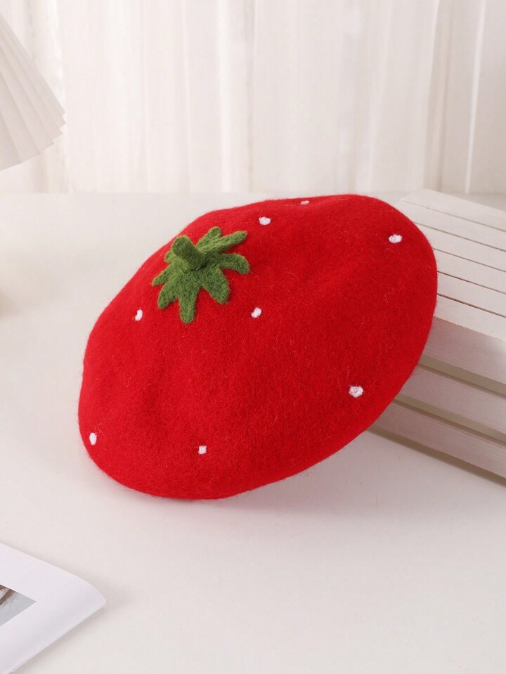 Boina de mezcla de lana con bordado de fresa linda, sombrero escolar para el Día de San Valentín