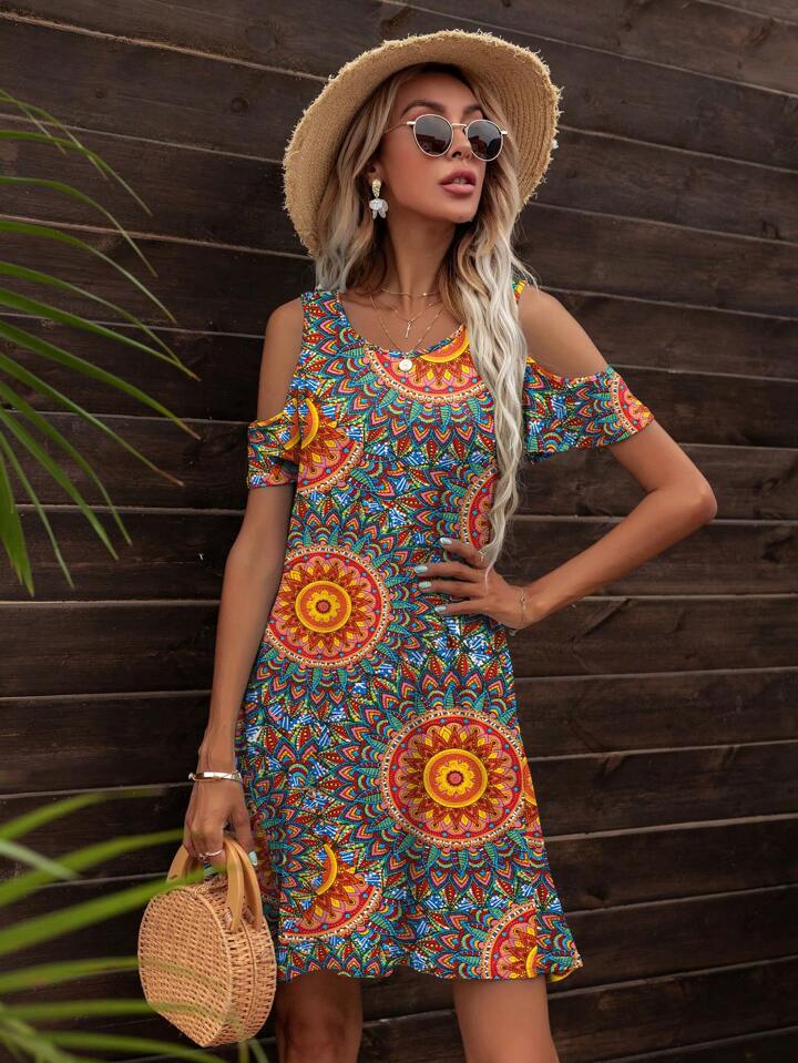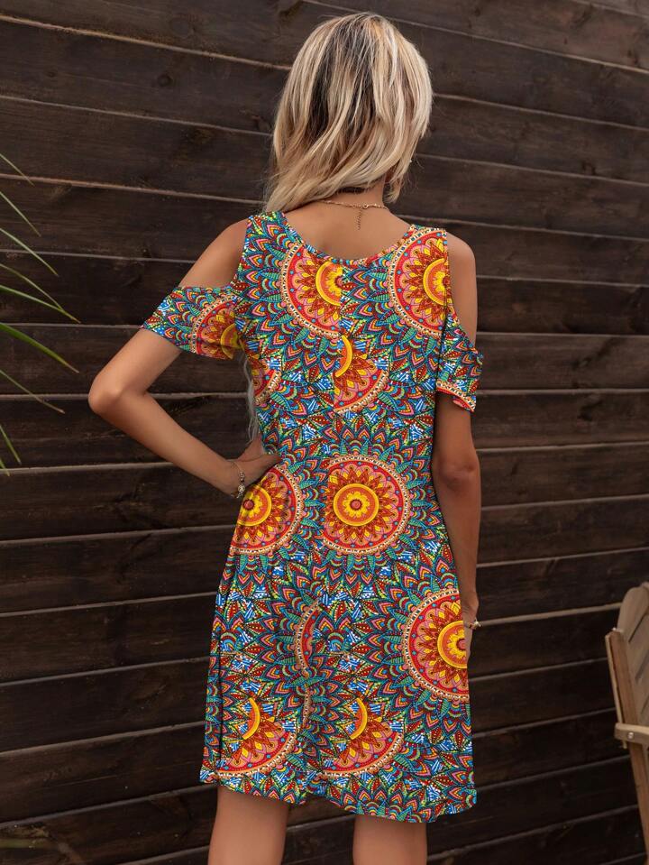 DEARCASE Vestido con estampado de mándala de hombros descubiertos