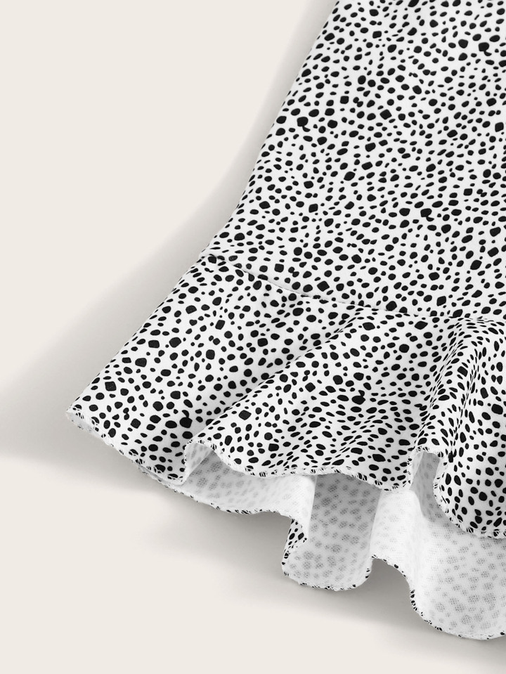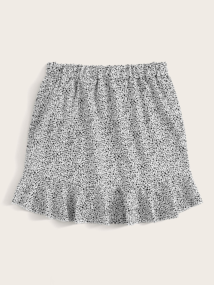 Falda cruzada con lazo bajo fruncido con estampado de lunares