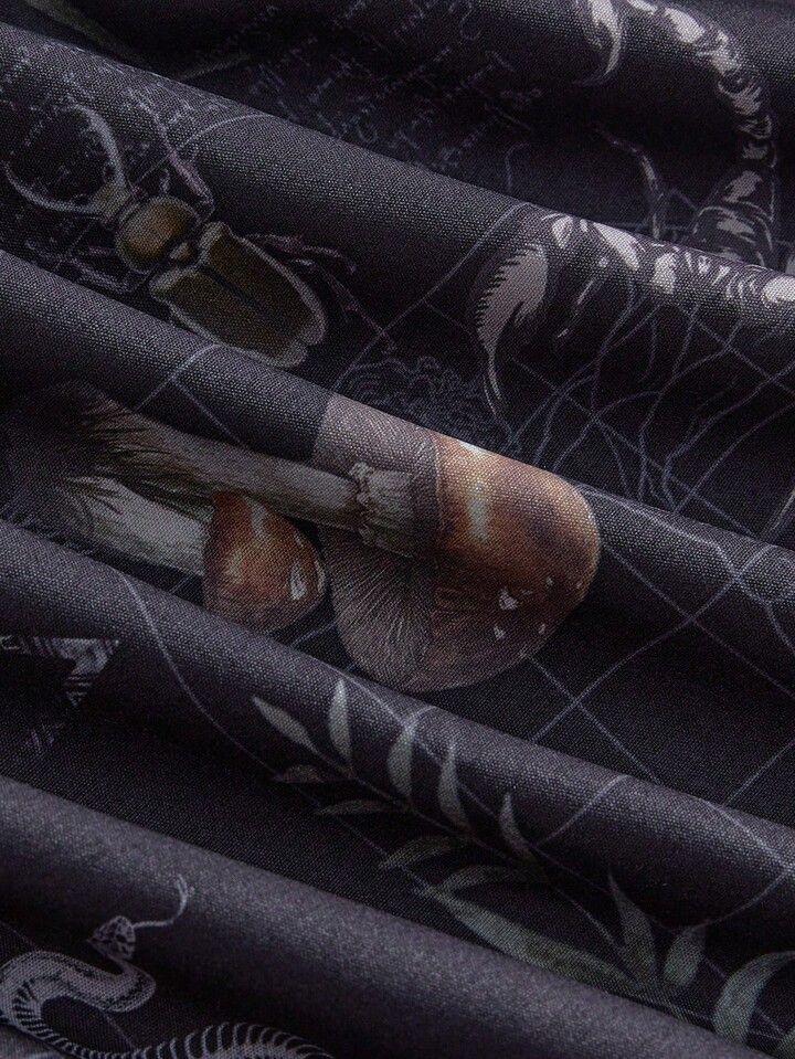 Goth Vestido largo con estampado vintage, cintura elástica y volantes, de estilo gótico oscuro para mujeres, conjunto de ropa de verano