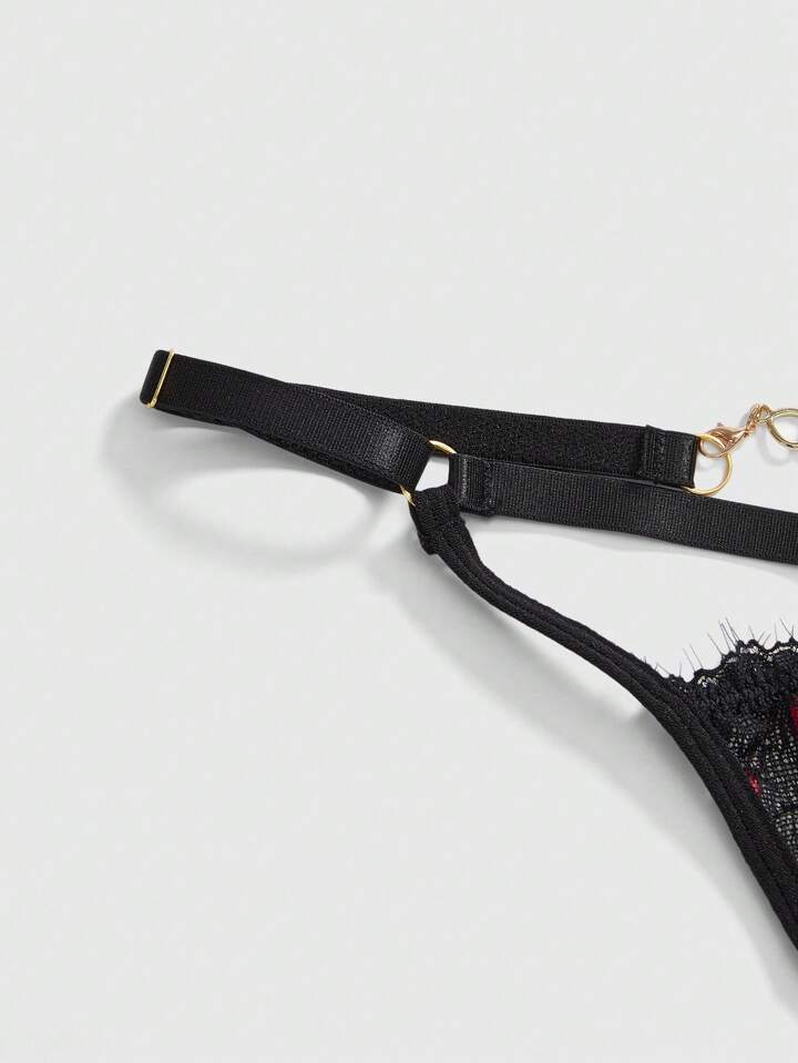 Goth Tanga sexy con forma de corazón, entreabierto, con encaje gótico oscuro para los labios y las pestañas