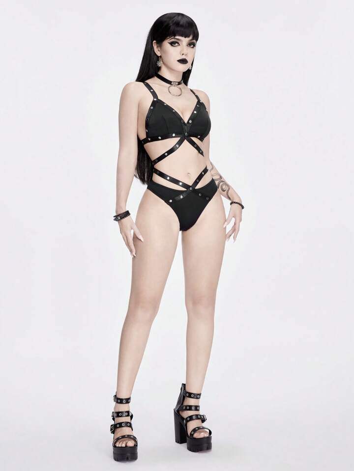 Goth Bikini de estilo gótico oscuro con remaches para el verano