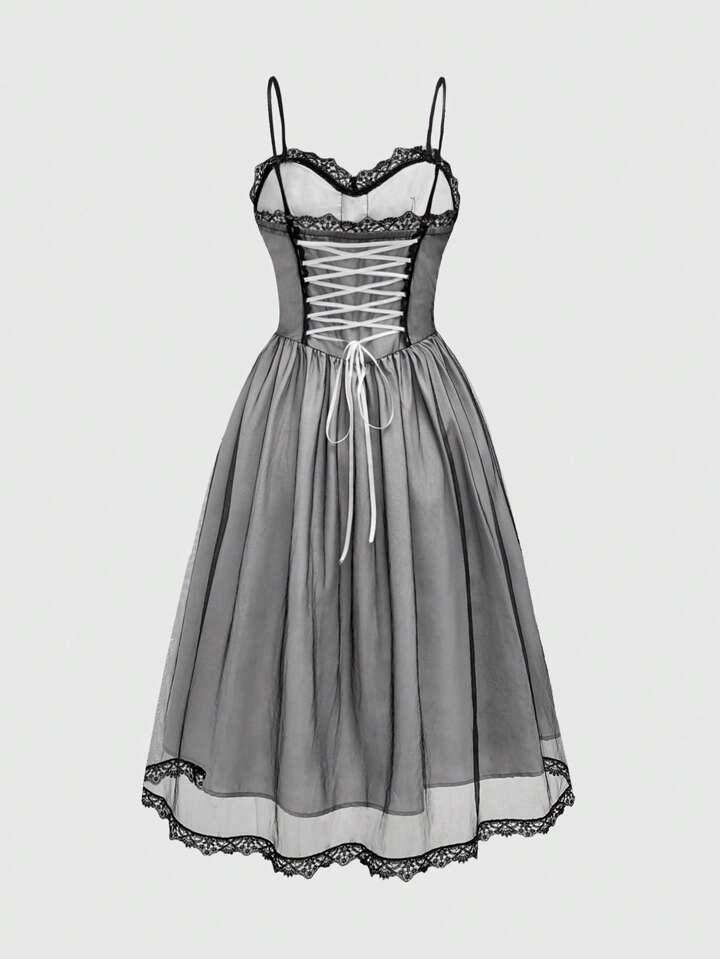 Goth Vestido de princesa ajustable con encaje y patchwork en estilo gótico lolita oscuro para mujer