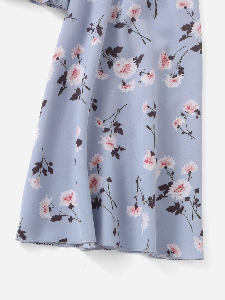 Top floral de hombros descubiertos con fruncido