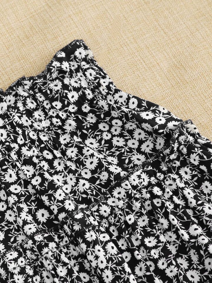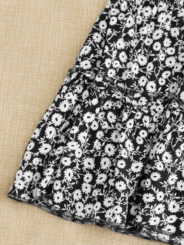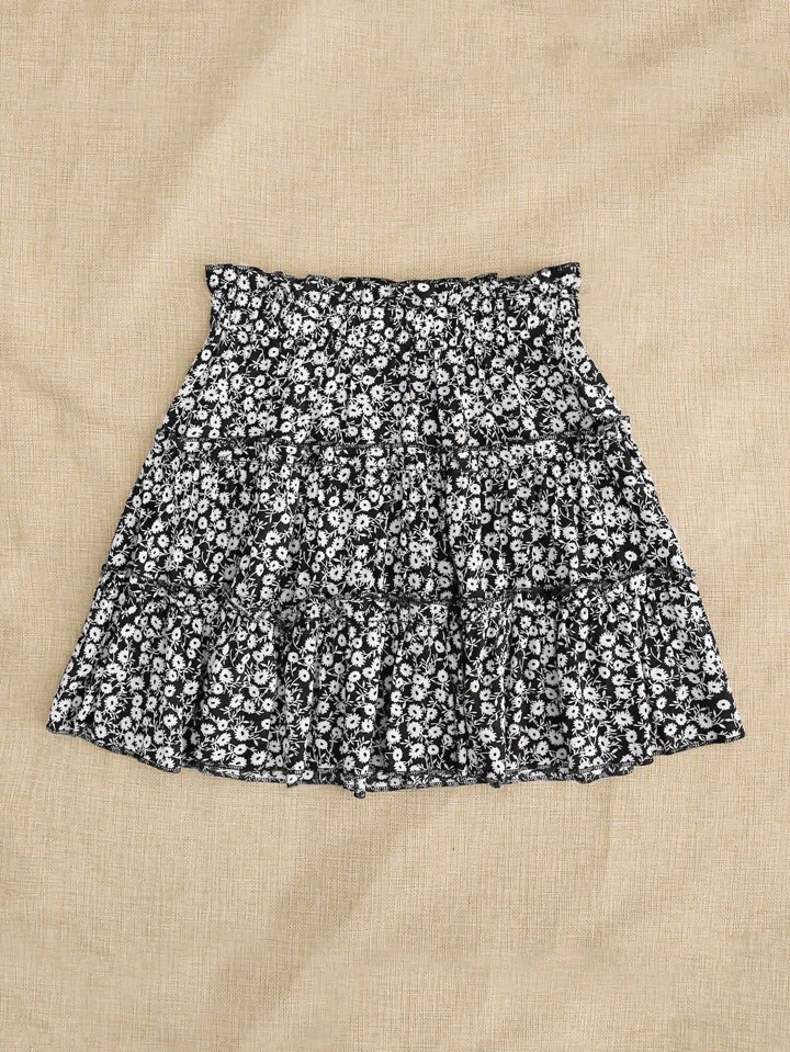 Falda a capas de cintura con volante con estampado floral de margarita