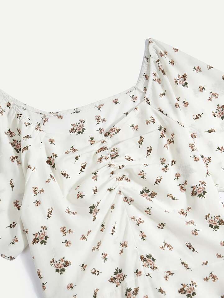 Vestido floral fruncido