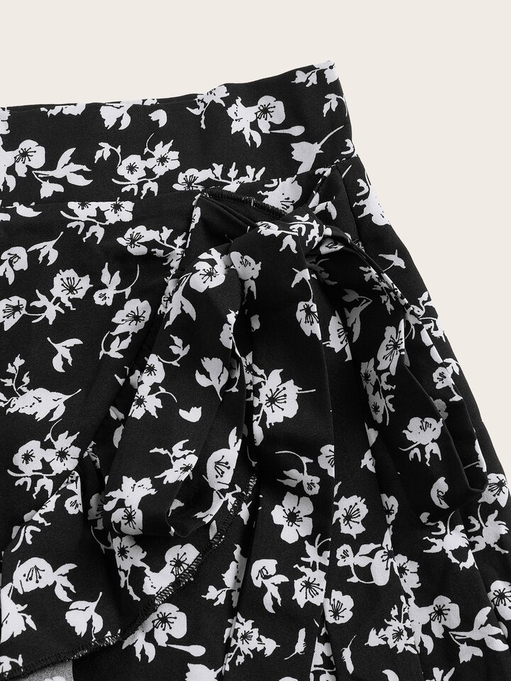 Falda cruzada floral bajo con fruncido con nudo lateral