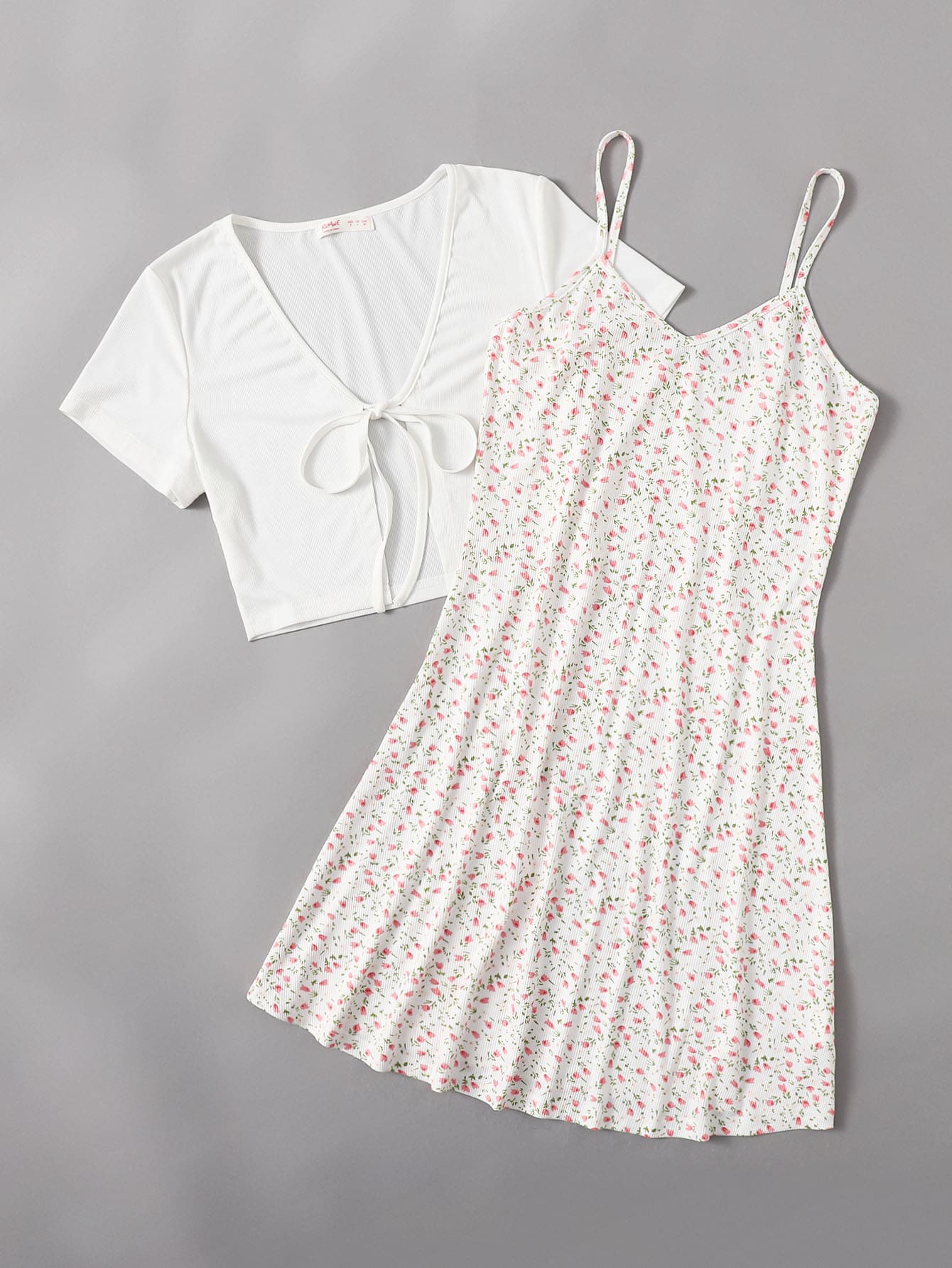 Outfit de dos piezas Lazo delantero floral de margarita Casual