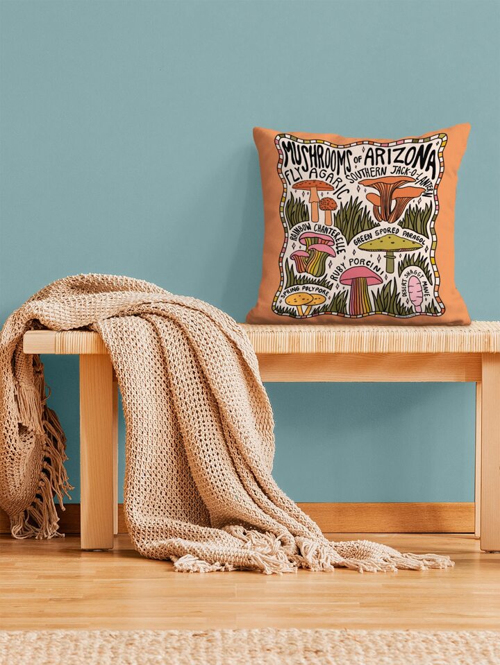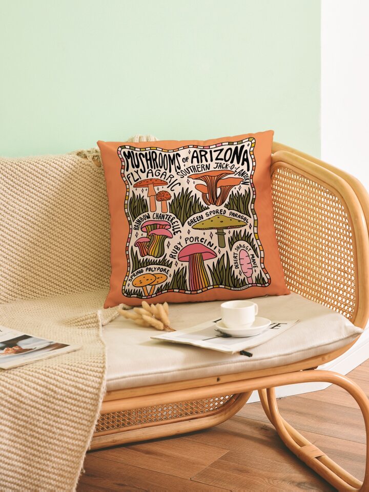 DoodlebyMeg 1 pieza Funda de cojín sin relleno con letra & con patrón de seta