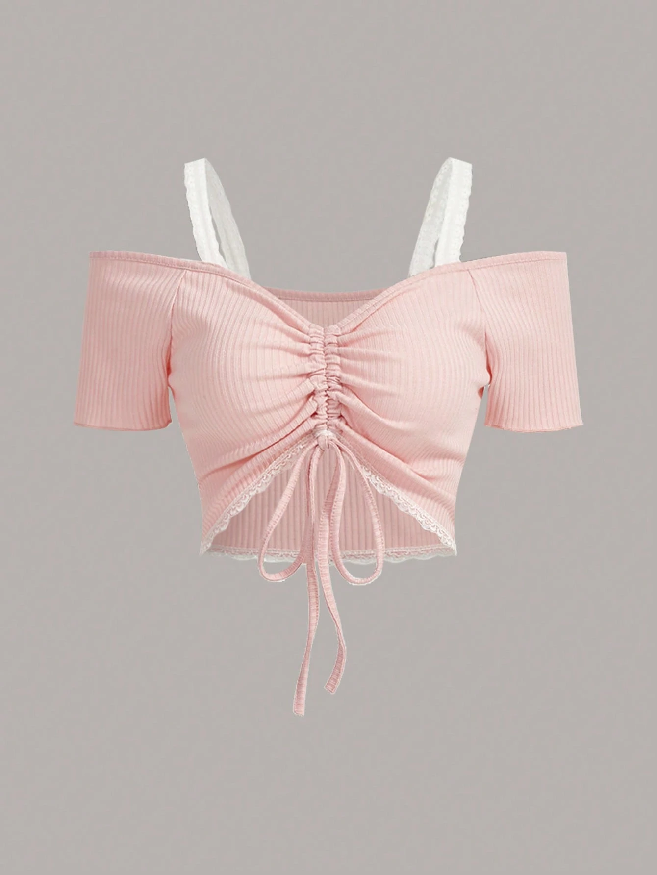 Camiseta con cordón delantero de hombros descubiertos