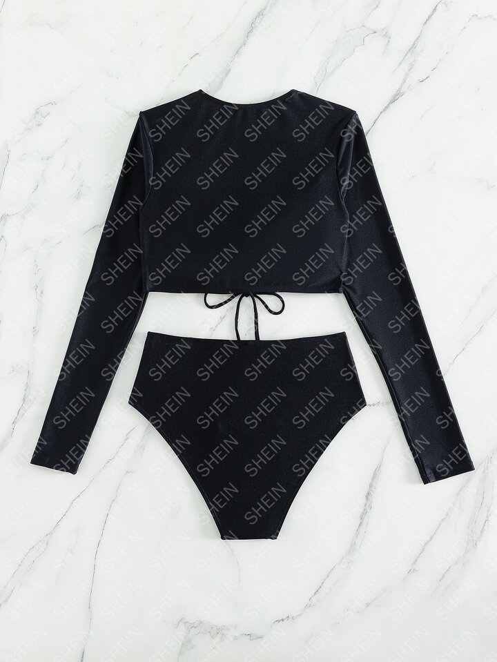 Conjunto de bikini de verano para playa con cordones delanteros y cintura alta