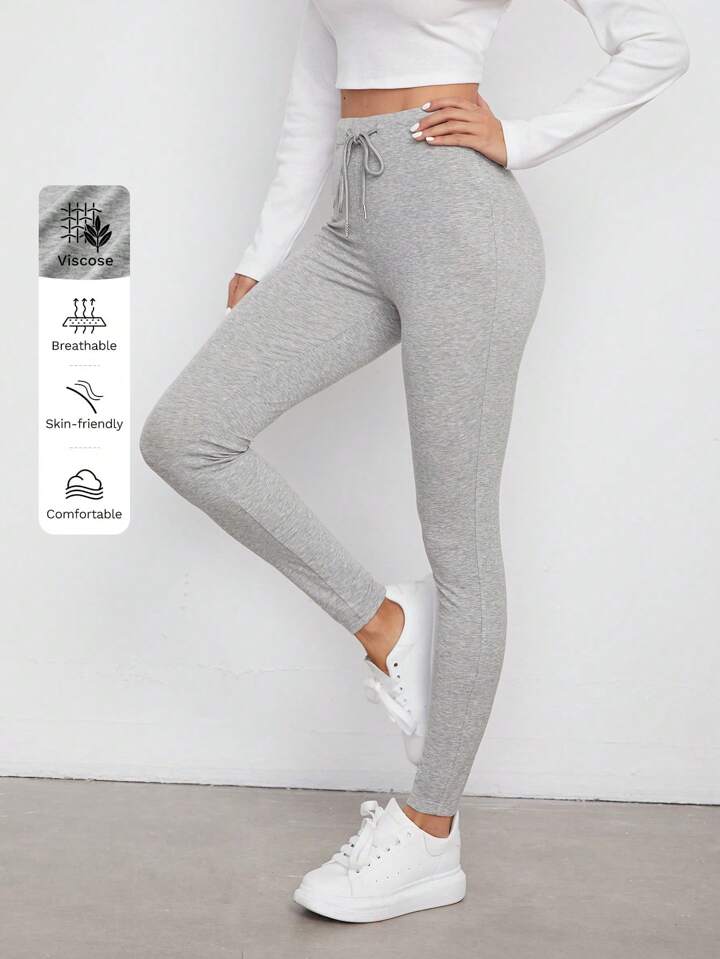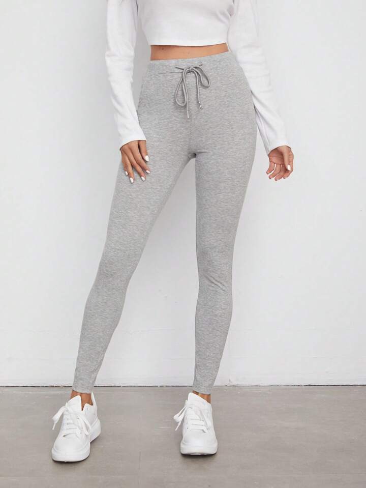 Leggings unicolores de cintura con cordón
