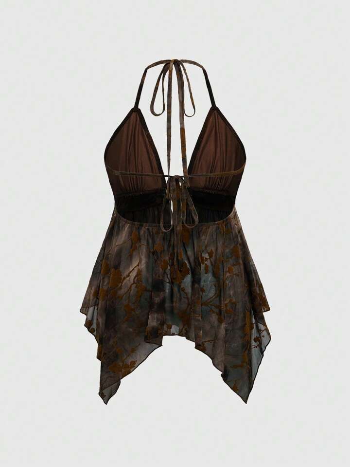 EDITION Chaleco de mujer con estampado tie-dye, cuello en V, espalda descubierta y bajo asimétrico, estilo retro de vacaciones