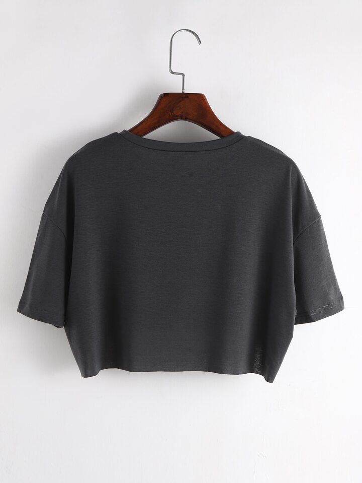 Camiseta corta con estampado de Tierra y letra de hombros caídos bajo irregular