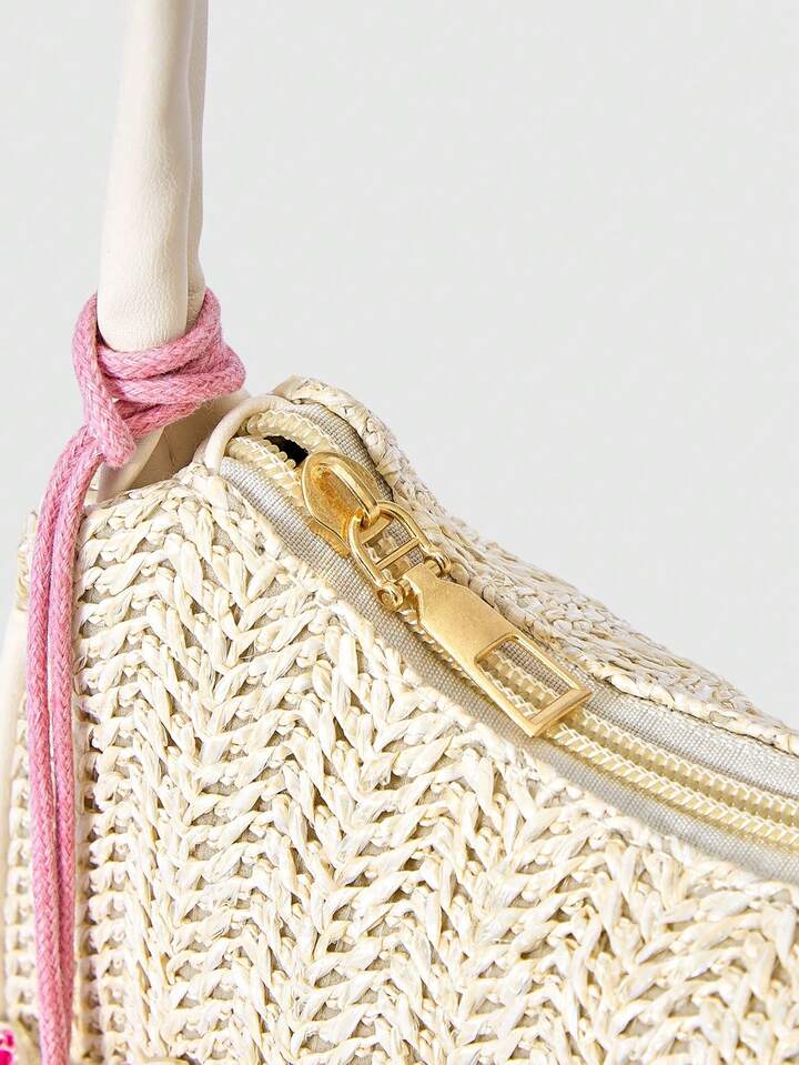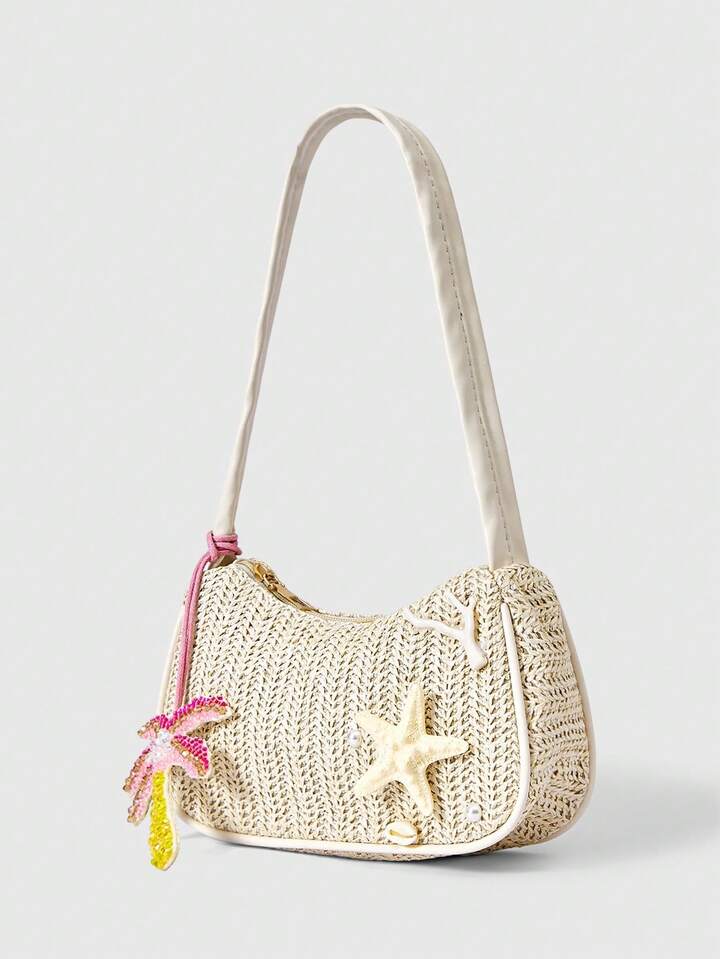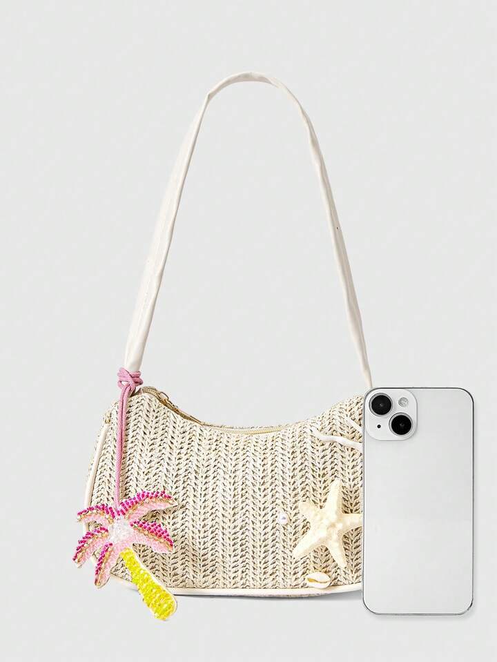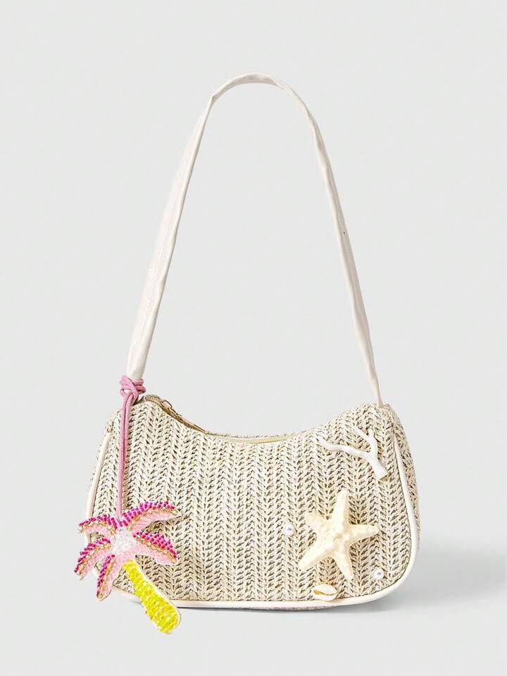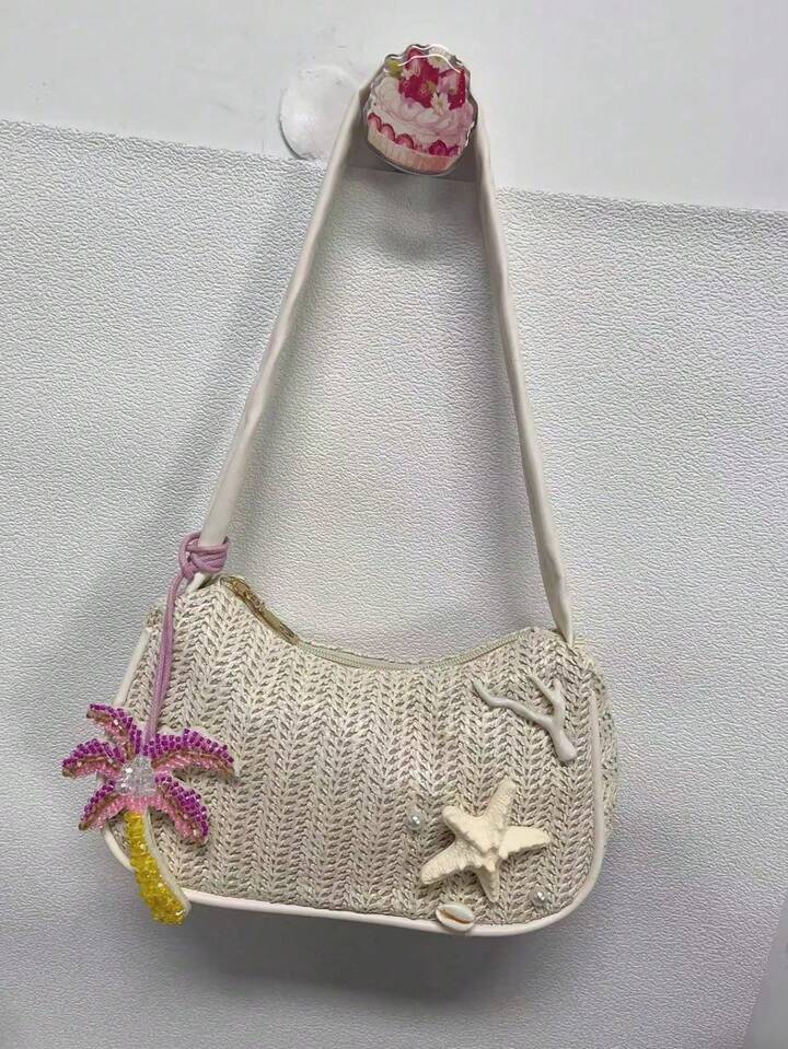 Fairycore 1 Juego de Bolso de Playa de Ganchillo Floral y Accesorios, Bolso de Hombro de Estilo Resort de Playa Personalizado y de Moda para Mujer (Incluye 1 Bolso y 1 Juego de Accesorios)