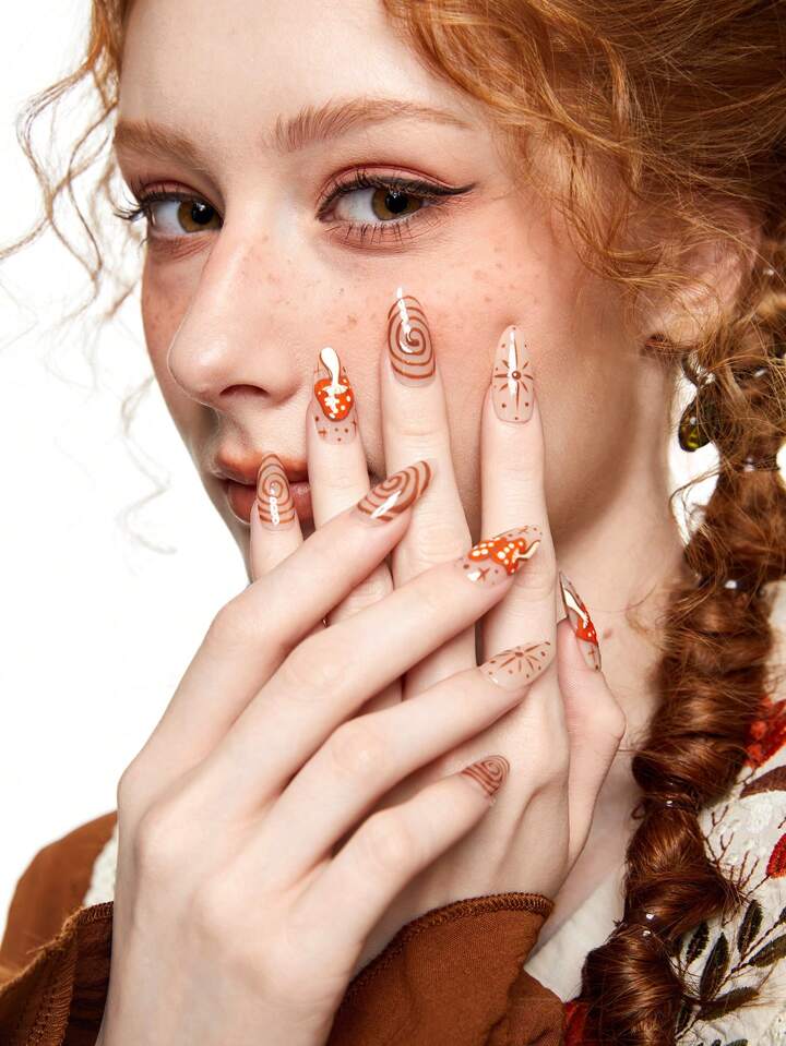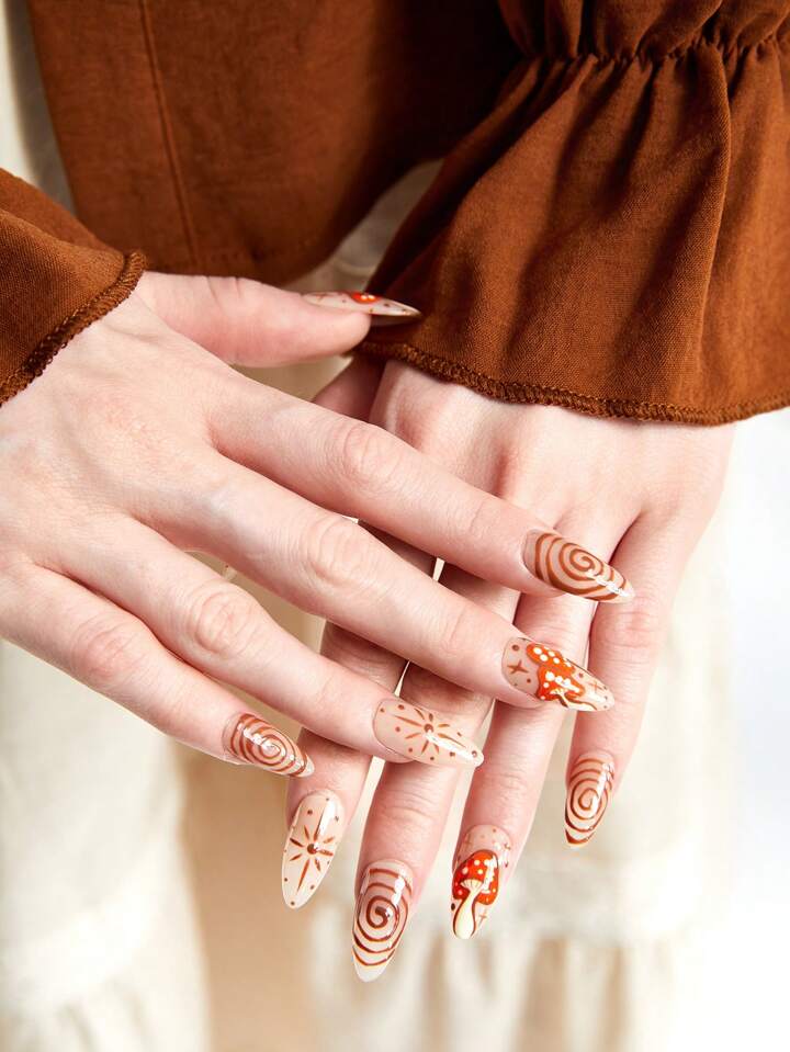 Fairycore 10 piezas de uñas postizas en forma de hongo hechas a mano + 3 hojas de adhesivo doble cara, calcomanías de uñas desmontables decoradas con strass con estilo Y2K, reutilizables para fiesta, baile y uso diario