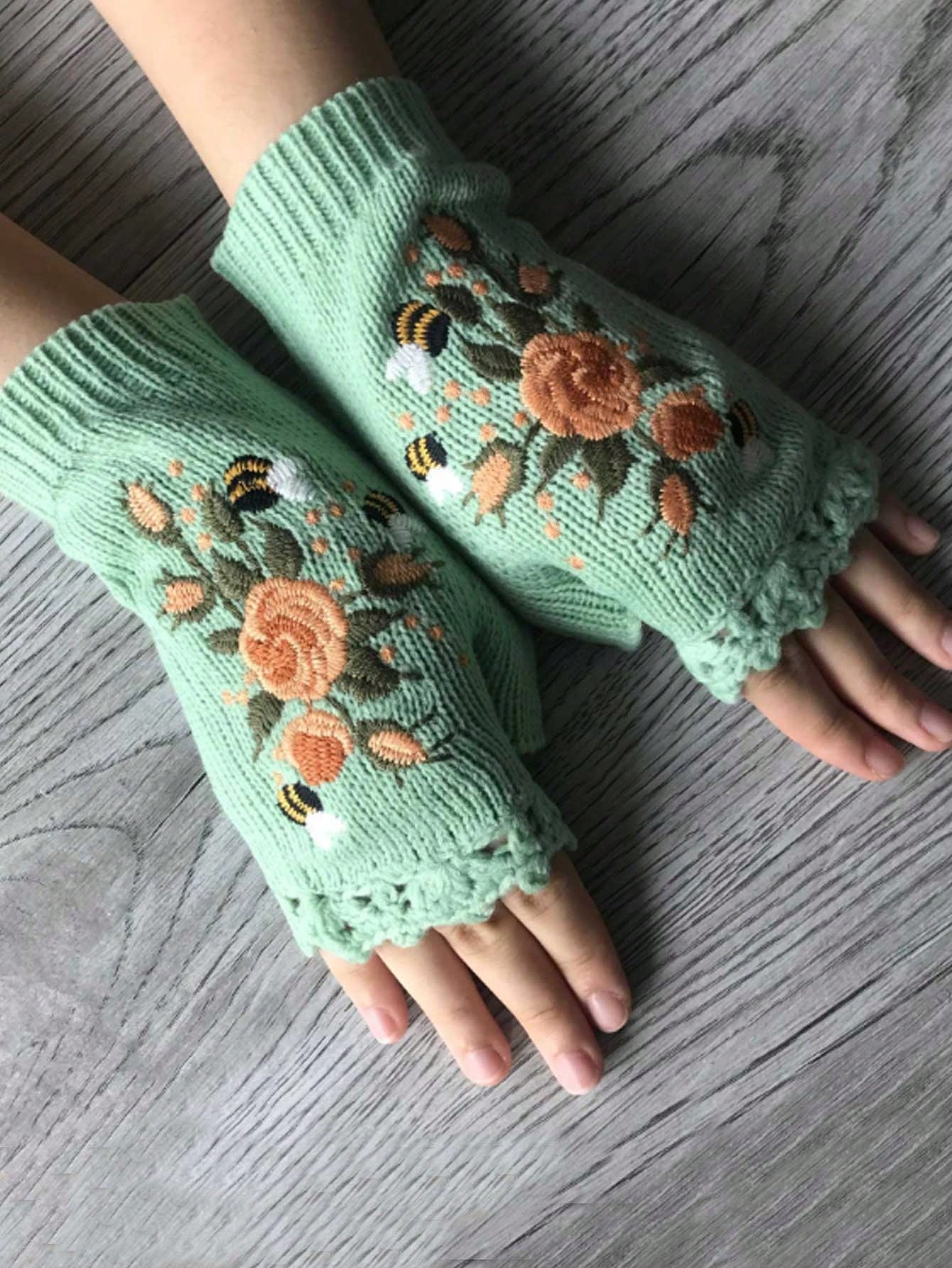 Fairycore Mujer 1 par Guantes sin dedo con bordado floral