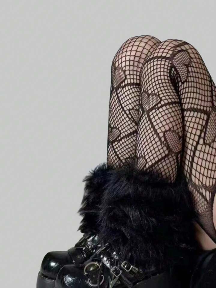 Fairycore 1 Par De Medias De Rejilla Con Forma De Corazón Negras Para Mujer Con Tiras, Adecuada Para Todas Las Estaciones