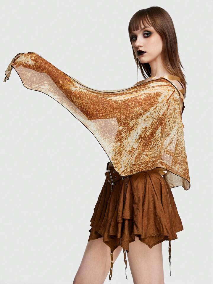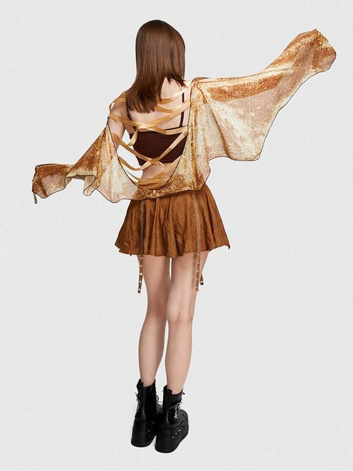 Fairycore 1 pieza Capa con tira cruzada con diseño de alas