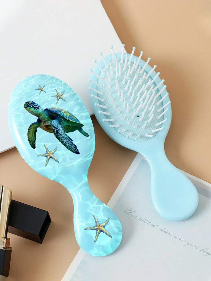 Fairycore 1 pieza Cepillo de pelo de cojín de aire con estampado de estrella de mar y tortuga, pequeño cepillo de masaje del cabelludo, adecuado para niños y niñas, verano