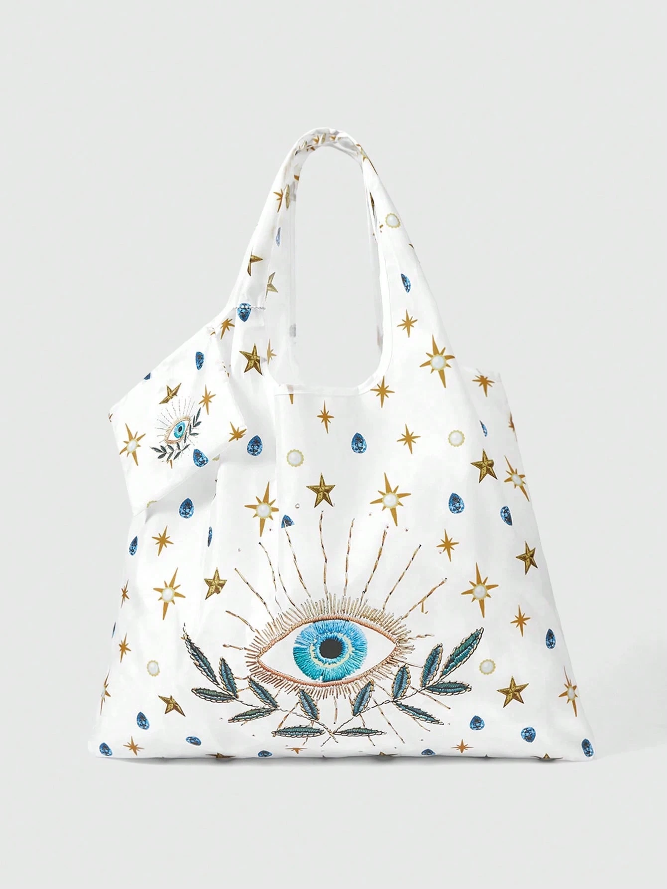 Fairycore 1 pieza Bolsa de almacenamiento con diseño celestial con forma de ojo, bolsa plegable de gran capacidad con monedero