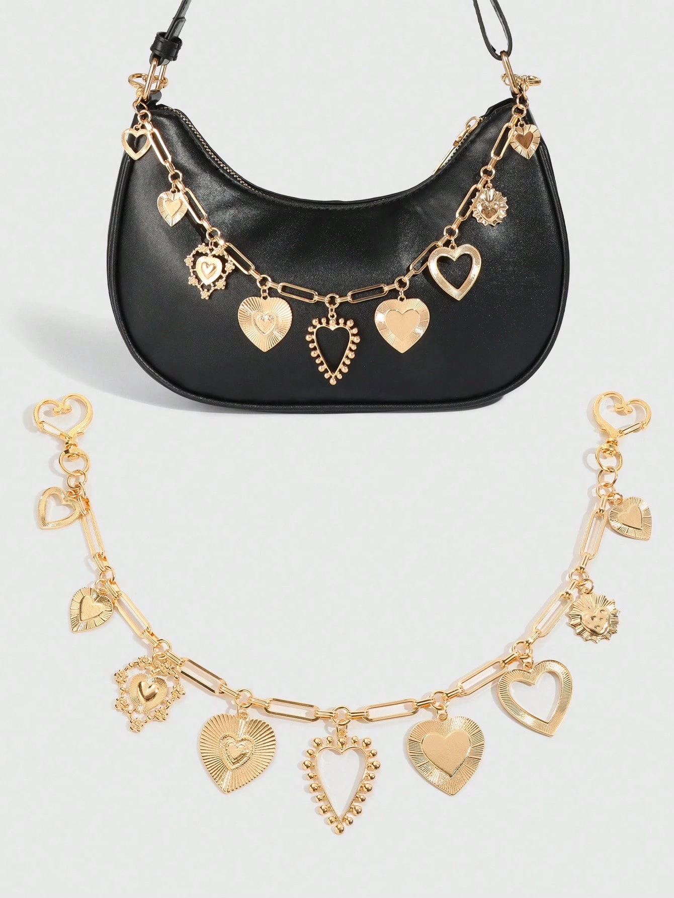 Fairycore 1 pieza Accesorio de bolso con forma de corazón dorado de moda, colgante de cadena de bolso con múltiples corazones, adecuado como regalo de vacaciones o cumpleaños
