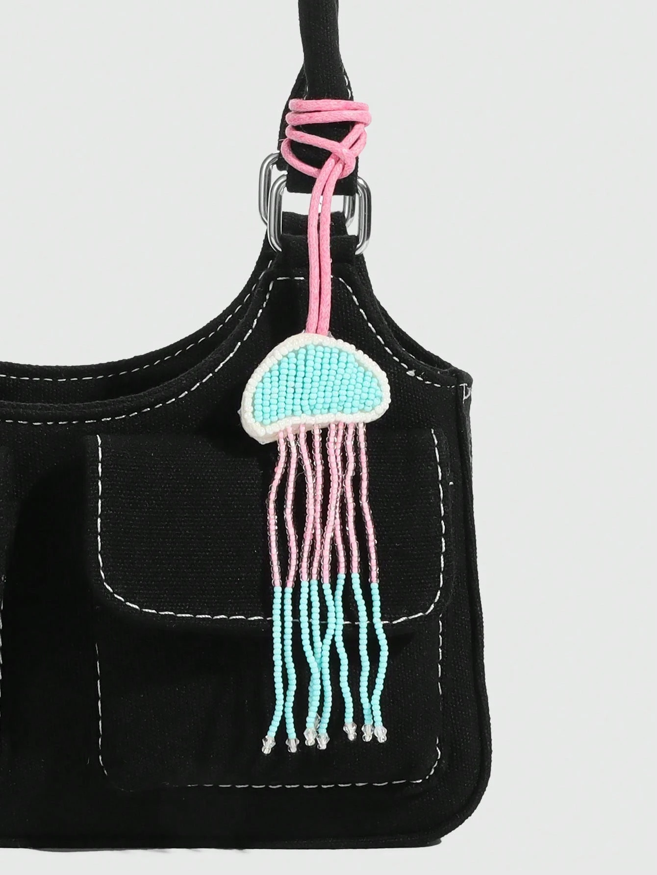 Fairycore 1 pieza Colgante decorativo hecho a mano con forma de medusa con borlas y cuentas, accesorio decorativo para bolso de vacaciones