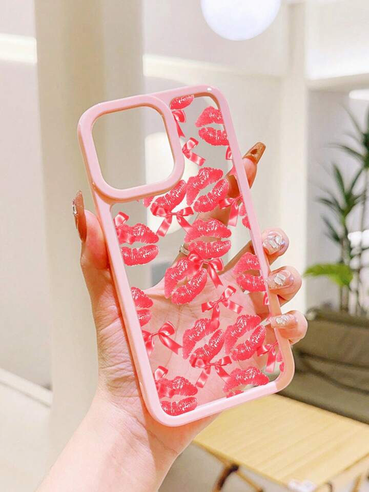 Fairycore 1 pieza Funda para iPhone con diseño de labios de color rosa, compatible con iPhone 11 12 13 14 15 Pro Max 16