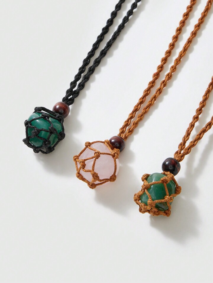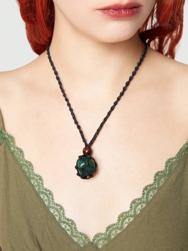 Fairycore 1 Pieza Collar De Colgante Con Red Tejida Aleatoria Y Piedra