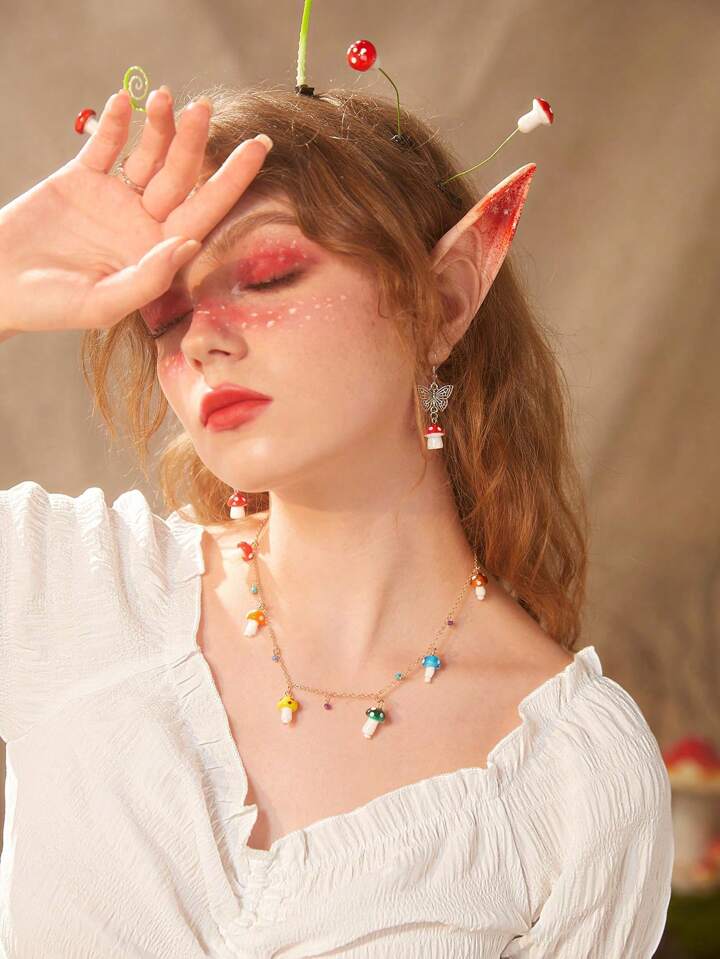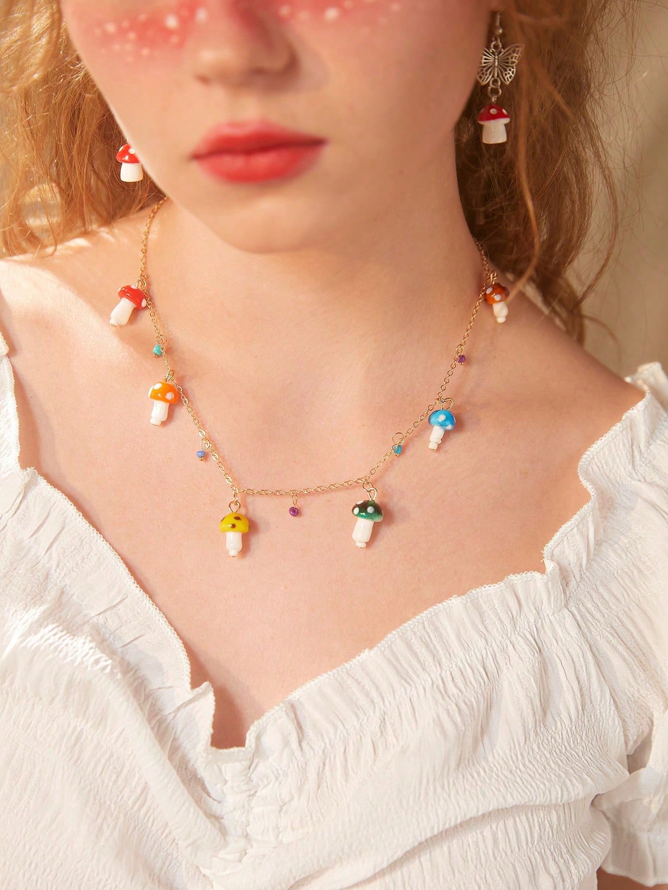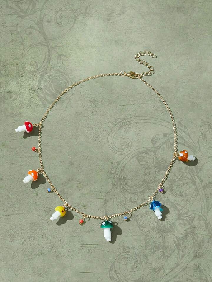 Fairycore 1 Pieza Collar De Colgante De Cuentas De Hongo Dulce Y Fresco De Color Aleatorio