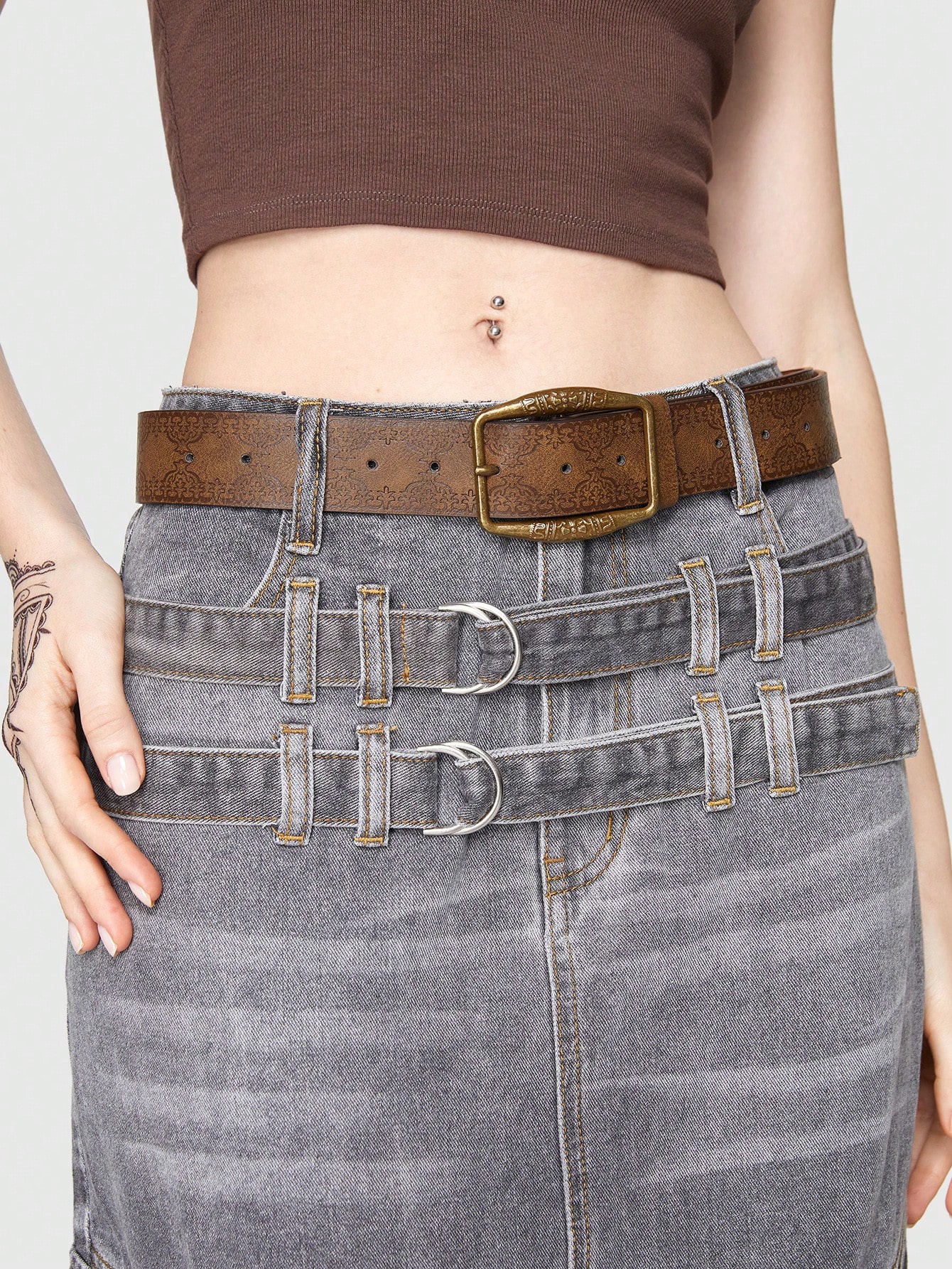 Fairycore Mujer 1 pieza Cinturón con hebilla con patrón floral rectángulo