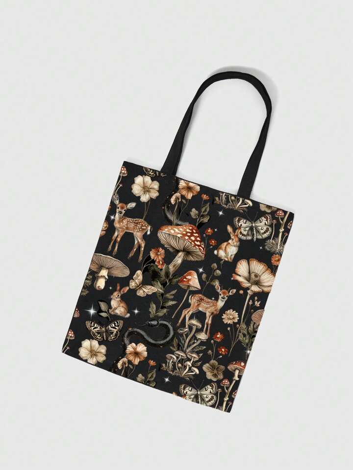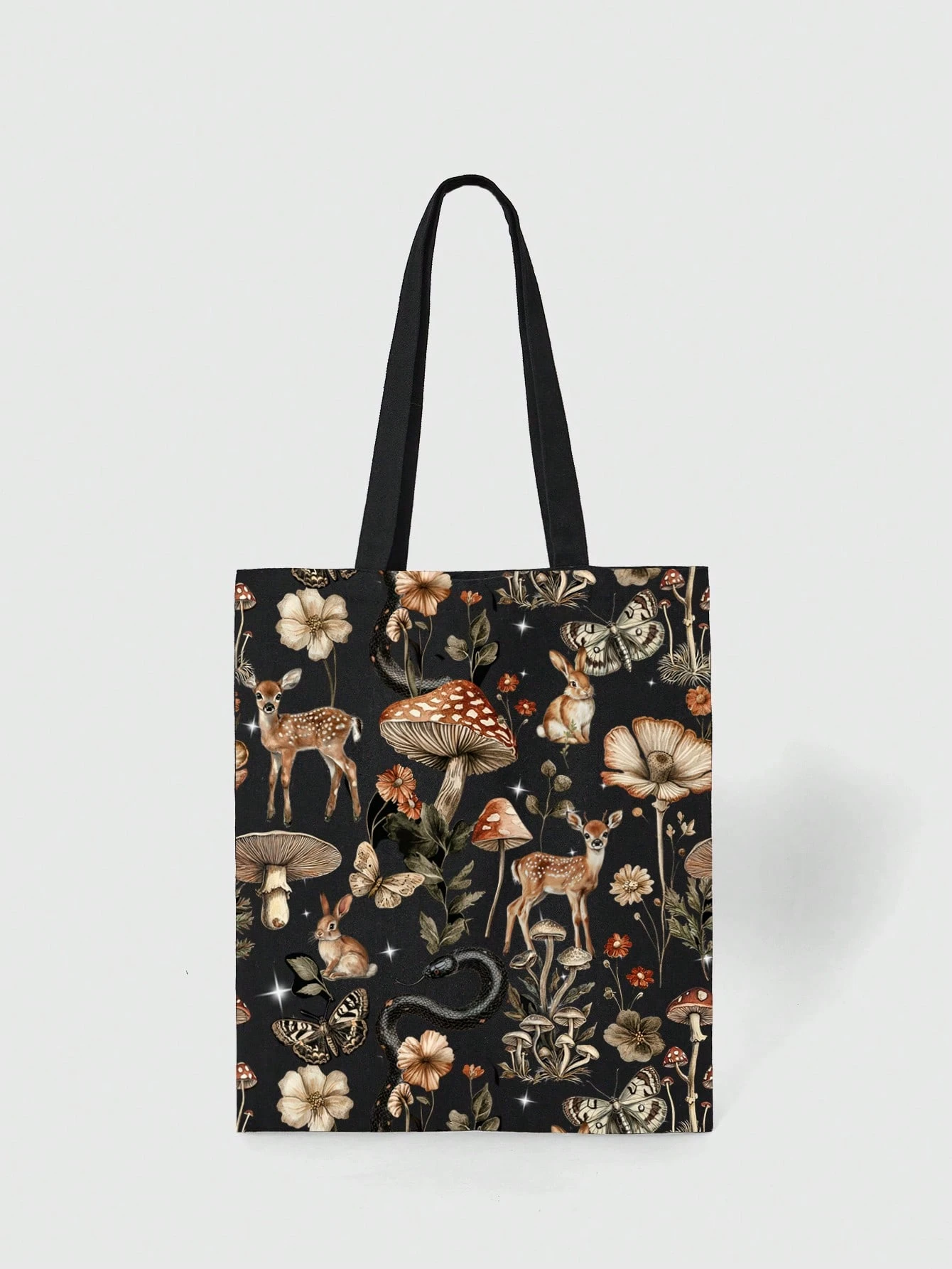 Fairycore 1 pieza Bolso de gran capacidad con estampado de conejo y champiñón para mujer