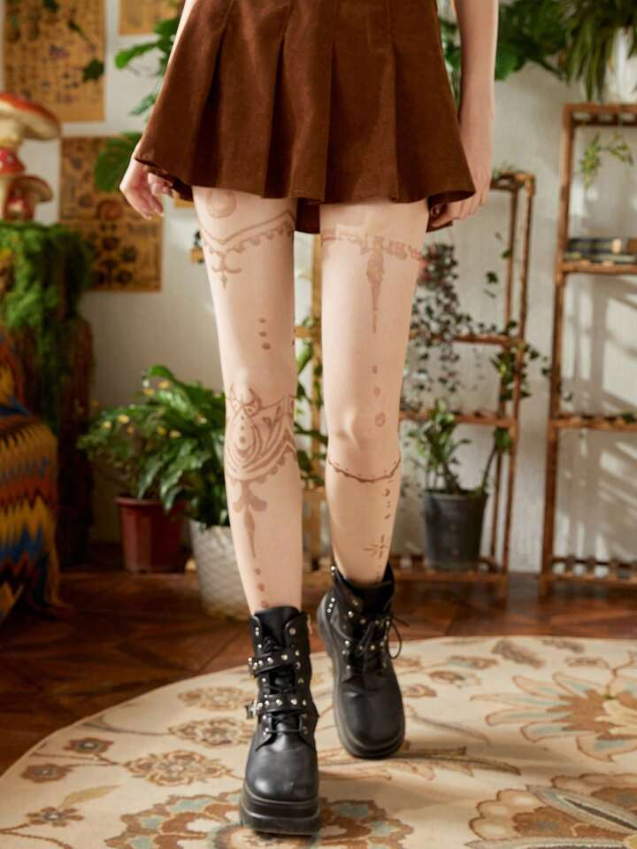 Fairycore Mujer 1 pieza Medias con patrón de sol y luna