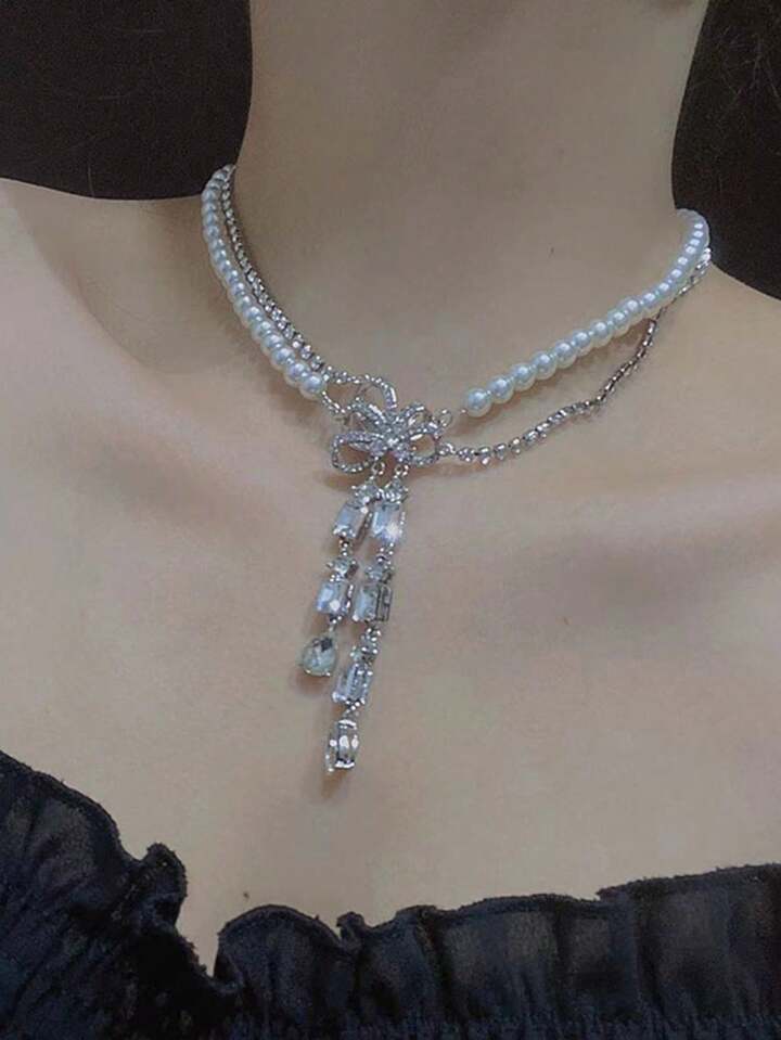Fairycore 1 Pieza Collar De Clavícula De Detalles De Circonio Cúbico Y Forma De Mariposa Y Gota De Agua Para Mujer