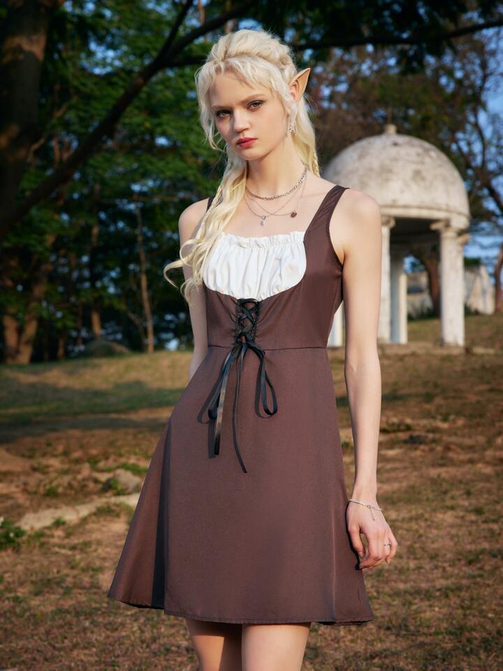 Fairycore Vestido 2 en 1 con cordón pecho con fruncido