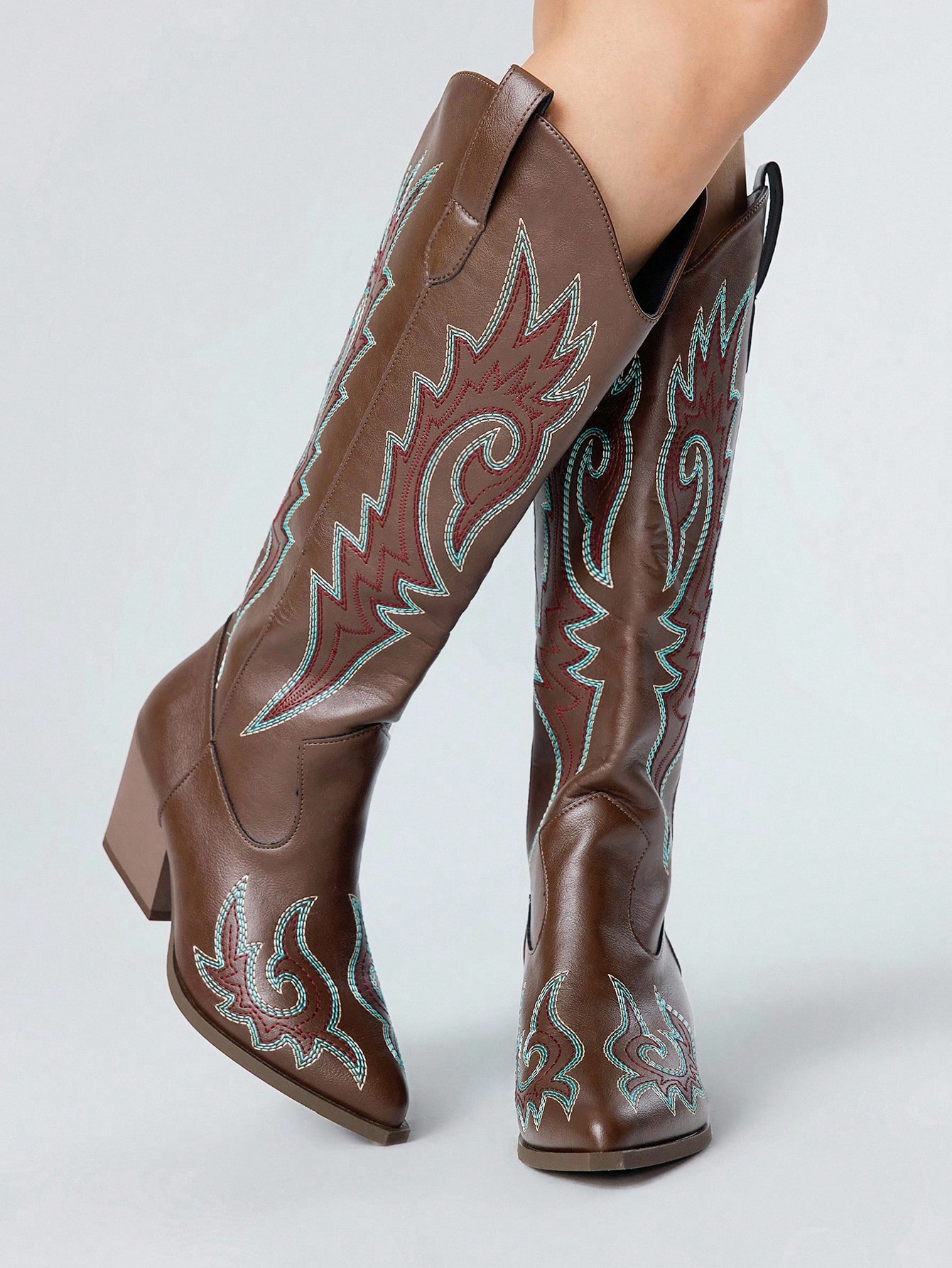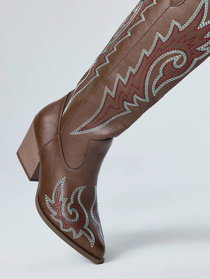 Fairycore Nuevas botas occidentales bordadas de marrón inspiradas en la naturaleza para primavera y otoño 2025, botas de moda para exteriores que llegan por encima de la rodilla