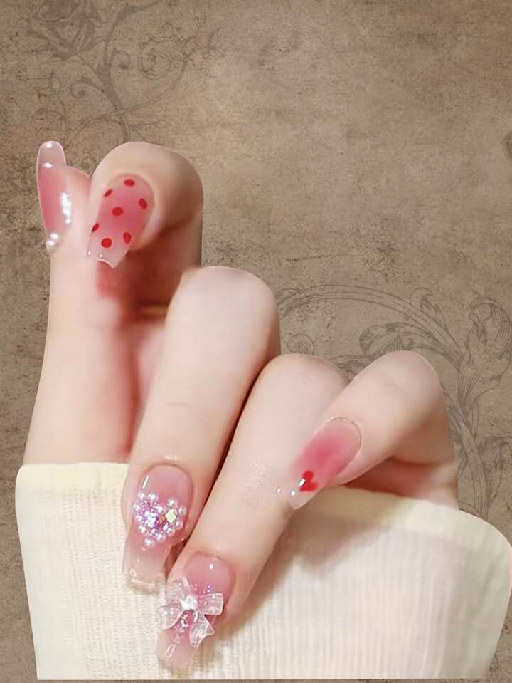 Fairycore 24 piezas ataúd 3d con diseño de lazo Uña postiza & 1 hoja cinta