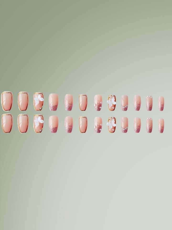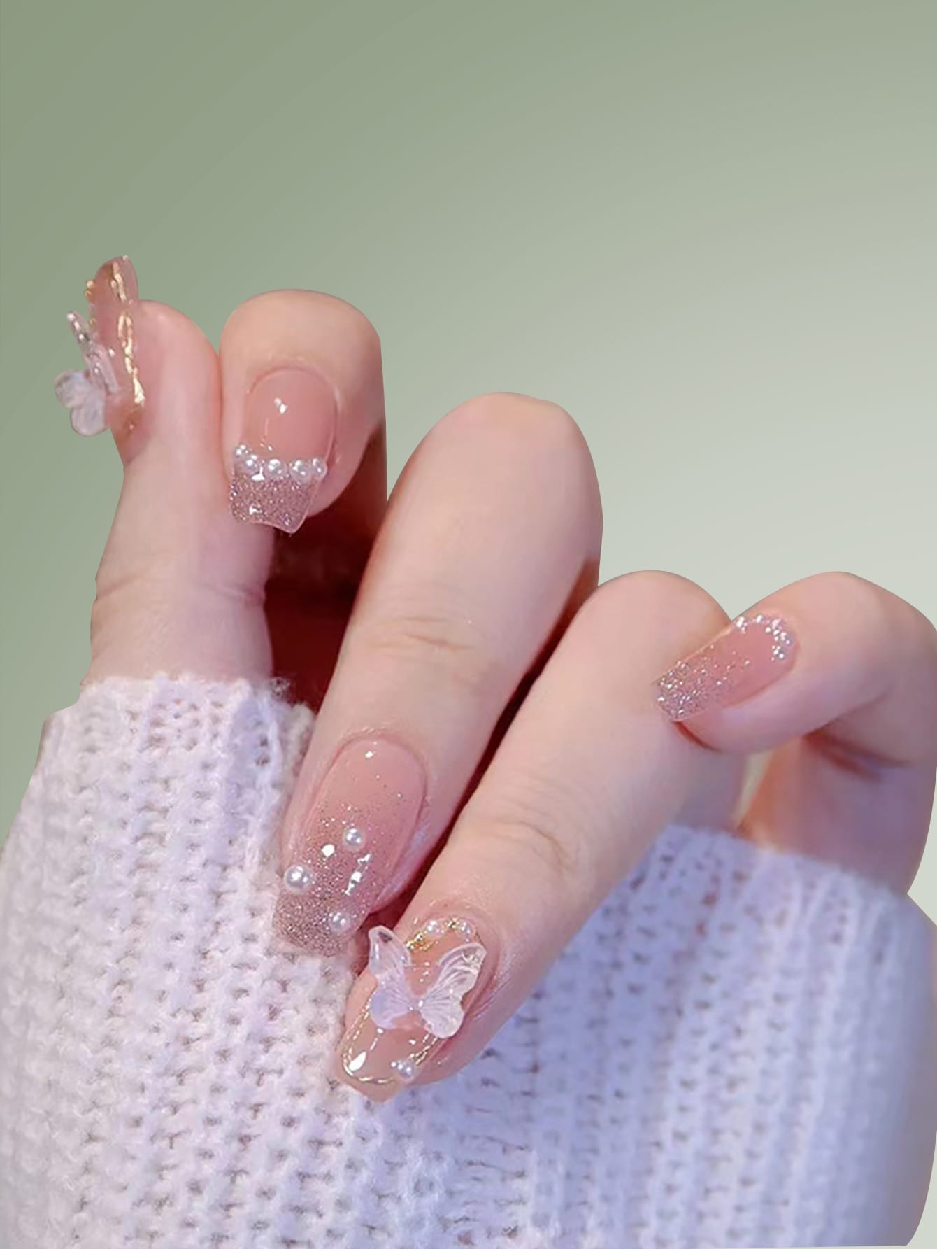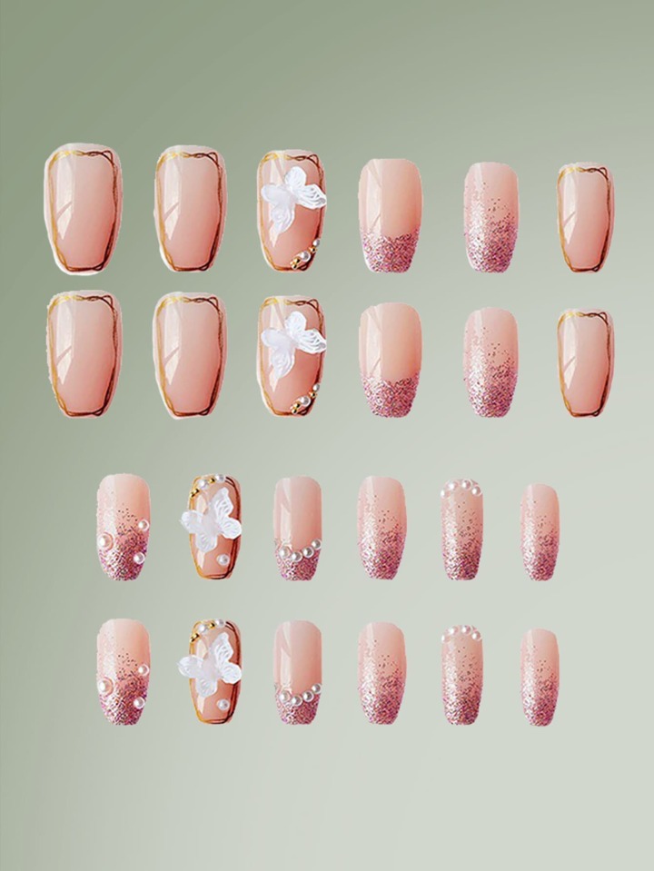 Fairycore 24 piezas largo ataúd con diseño de mariposa Uña postiza & 1 hoja cinta