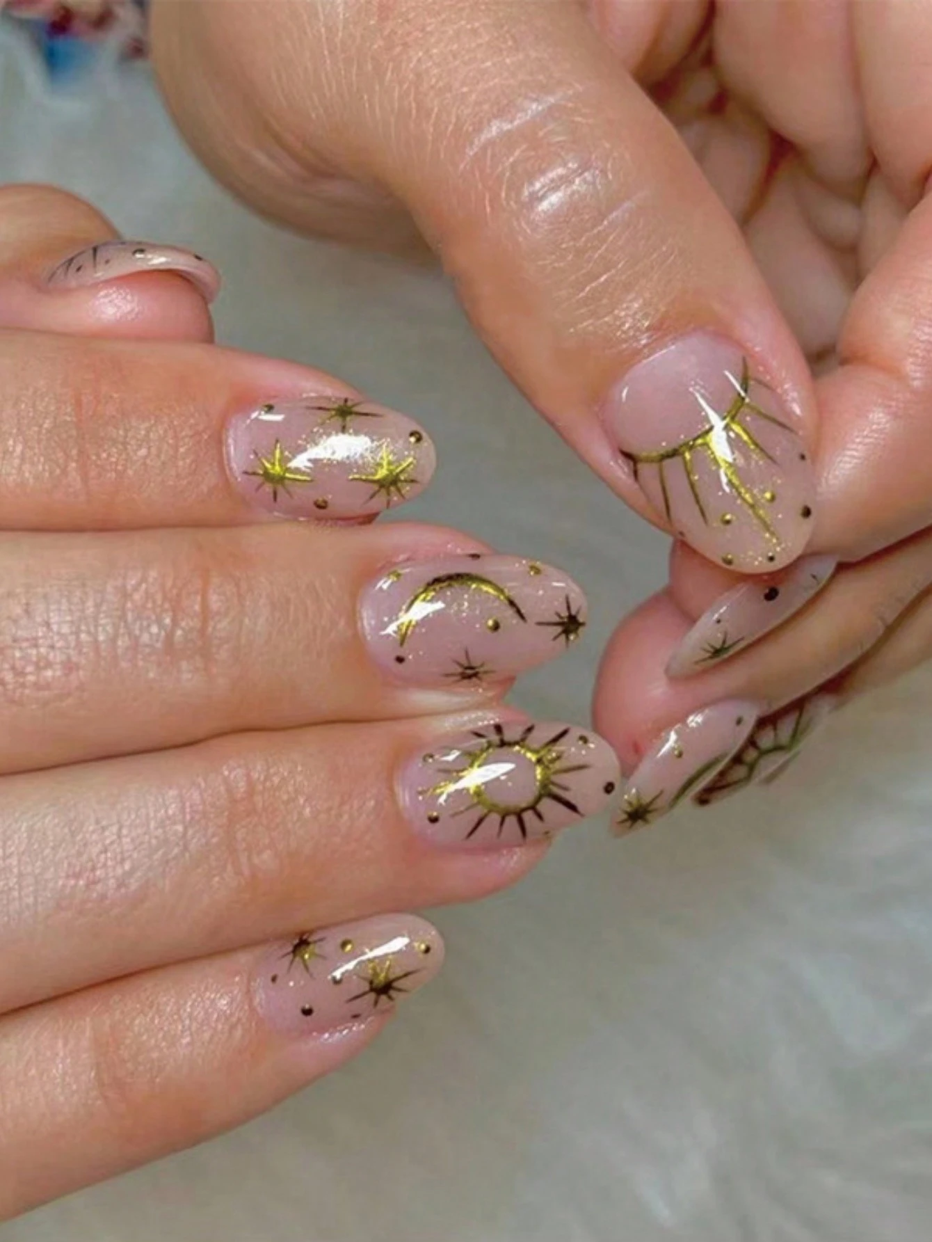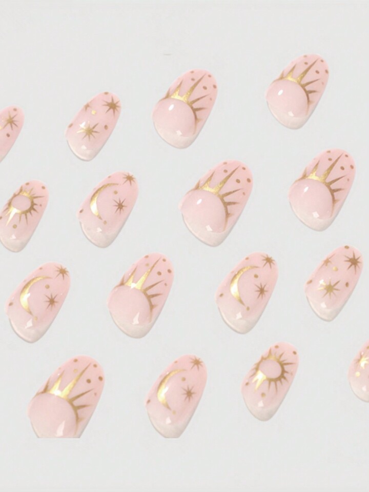 Fairycore 24 piezas corto almendra sol & luna detalle Uña postiza Kit