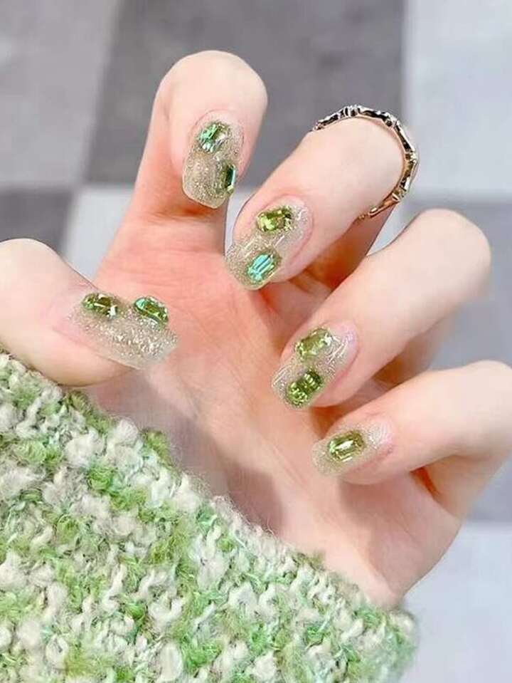Fairycore 24 piezas cuadrado 3d con diseño de diamante de imitación Uña postiza & 1 hoja cinta