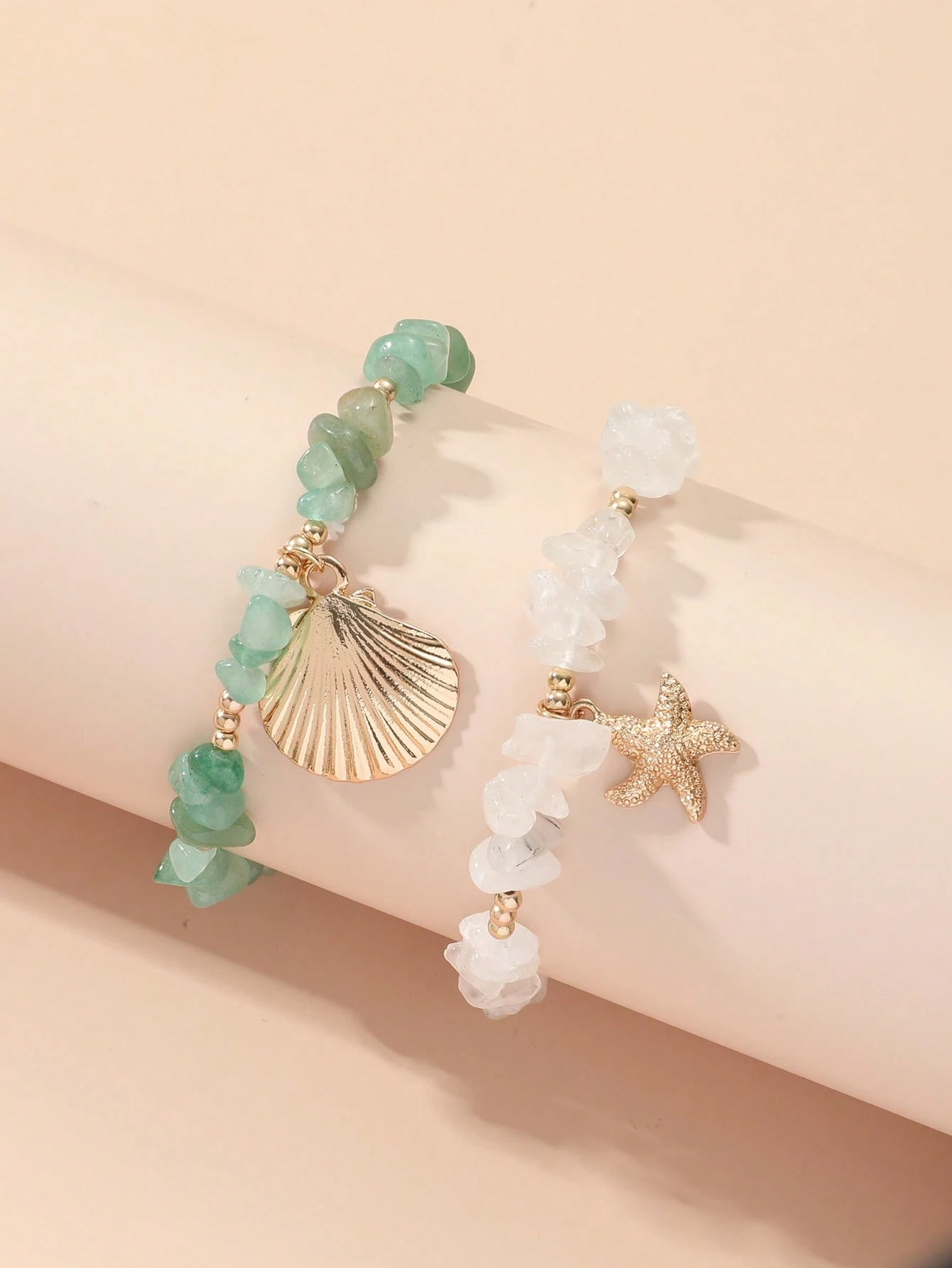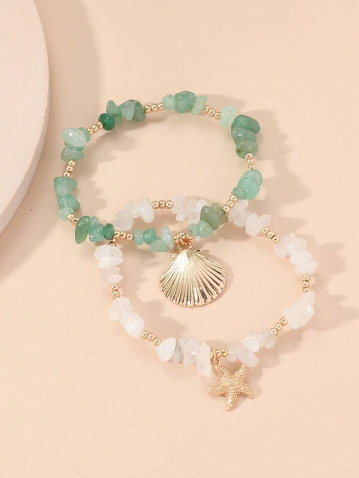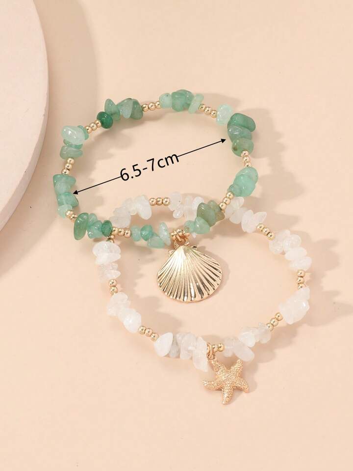 Fairycore 2 piezas Pulsera con cuenta moda con diseño de concha para mujeres para decoración diaria