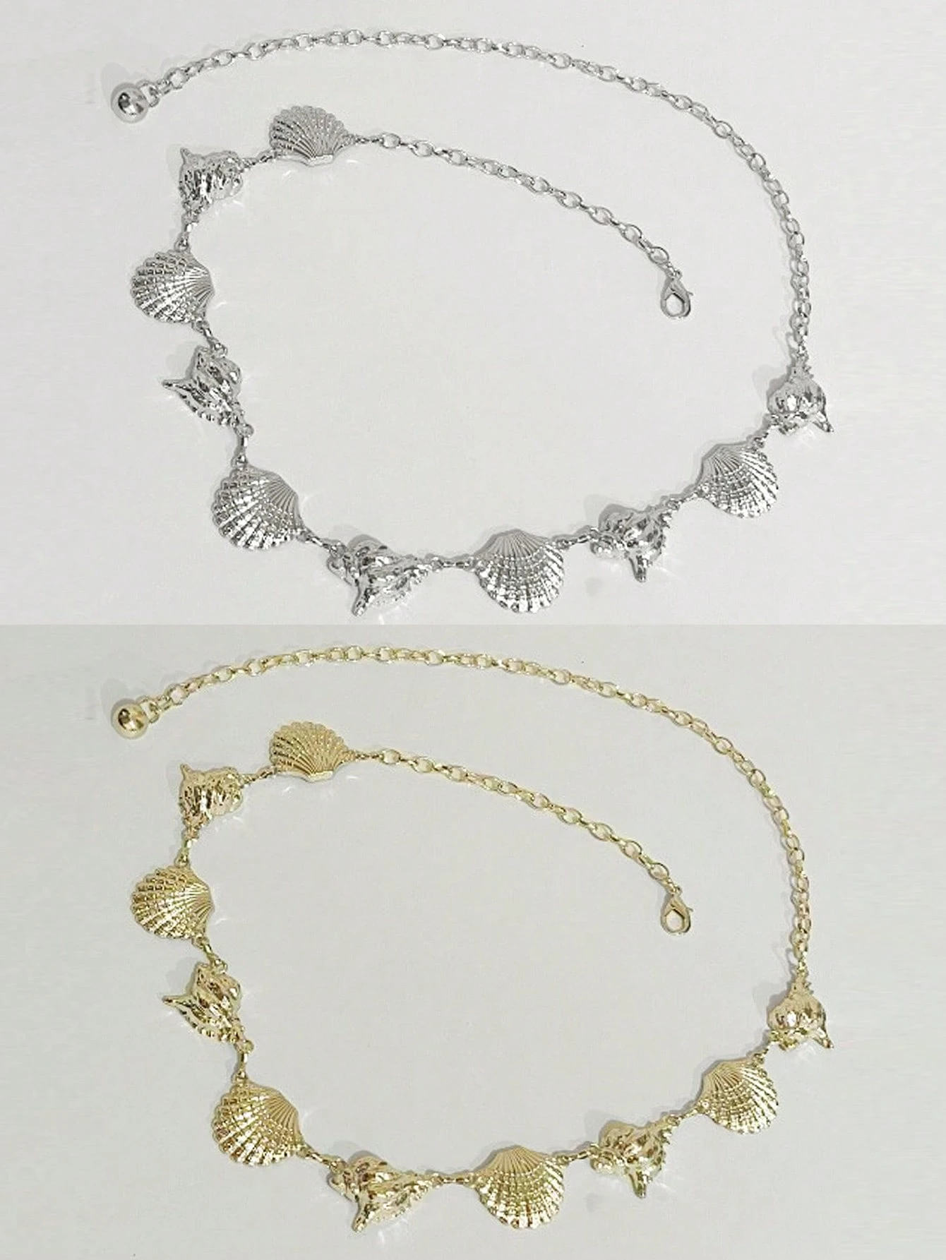 Fairycore Set de 2 cadenas de cintura decorativas de una sola capa con forma de concha marina dorada y plateada, accesorio versátil para vestidos